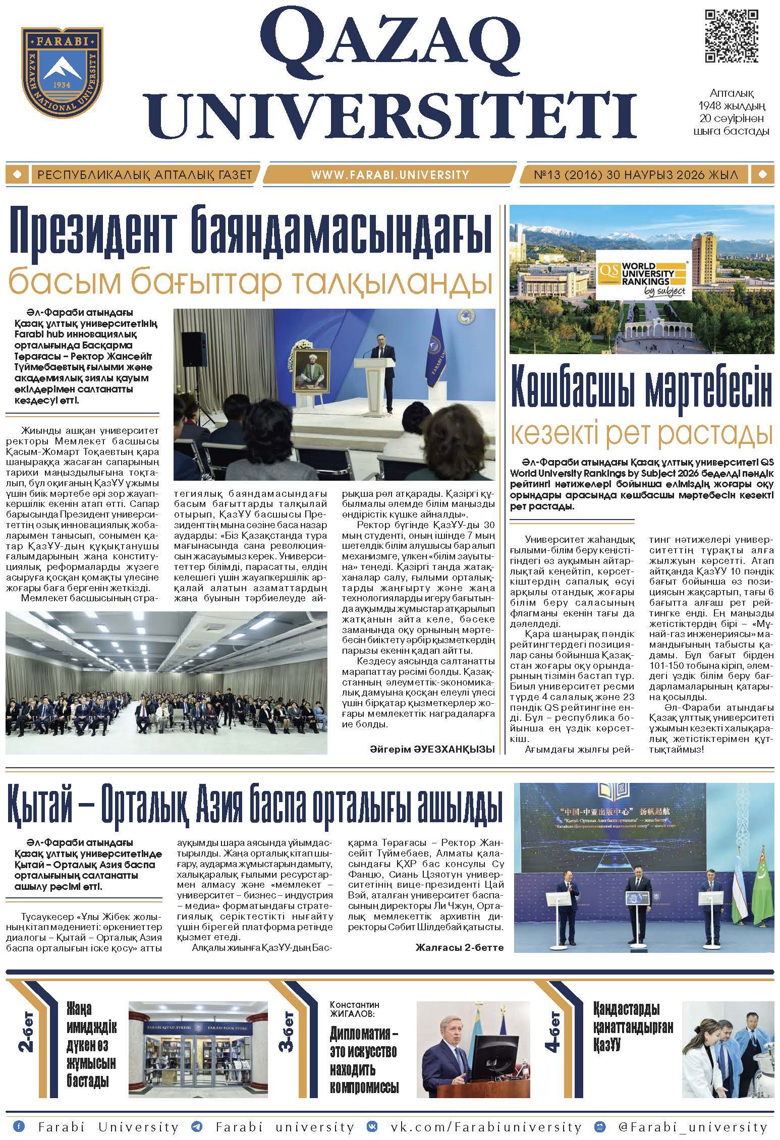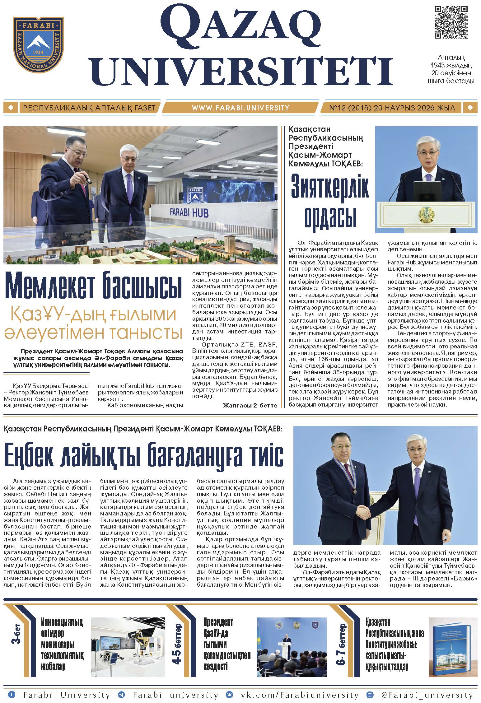 Мемлекет басшысы Қасым-Жомарт Кемелұлы Тоқаевтың Әл-Фараби атындағы ҚазҰУ-дың 90 жылдығына орай құттықтауы