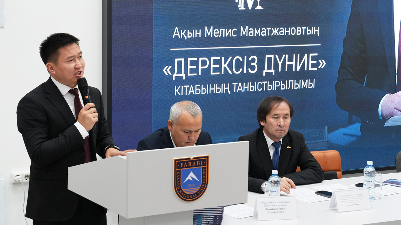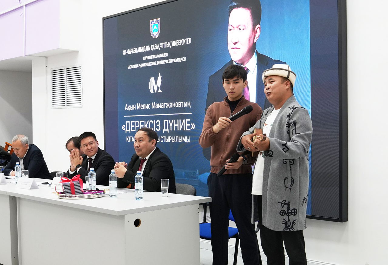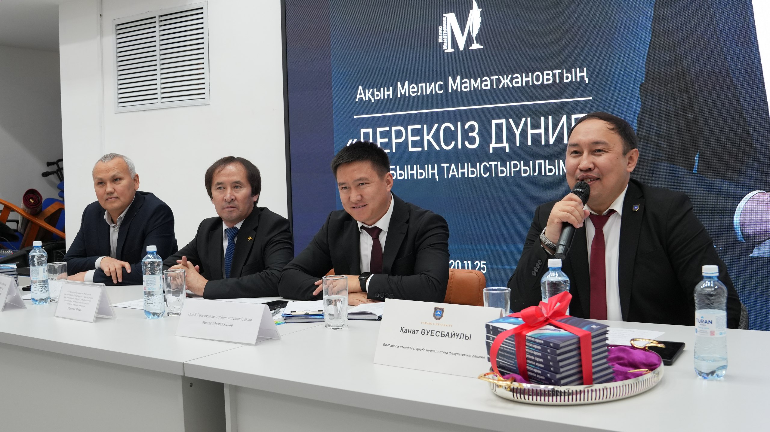 Әл-Фараби атындағы Қазақ ұлттық университетінде қырғыз ақыны Мелис Маматжановтың «Дерексіз дүние» атты жаңа жыр жинағының тұсаукесері өтті. Іс-шараны журналистика факультеті мен Баспагерлік-редакторлық және дизайнерлік өнер кафедрасы Ош мемлекеттік университетімен ынтымақтастық аясында ұйымдастырды.