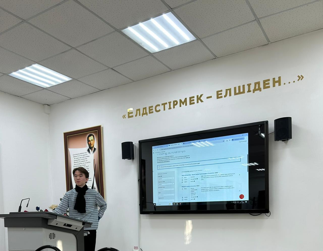 2025 жылдың 24-қараша күні Германдық зерттеулер орталығында зерттеу практикасынан өтіп жатқан “аймақтану” және “халықаралық қатынастар” білім беру бағдарламаларының магистранттары — Әшімбай Анар, Оразтай Алайдар, Түлен Бекарыс, Жақсыбаев Дінмұхаммед, Ерболат Нұрай — және жетекші ғалымдар Л. Исова, Г. Байкушикова және А. Күлбаева “Тұрақты даму іс жүзінде: Германия болашақтың білім беру жүйесін қалай қалыптастырады” атты шара ұйымдастырды.
