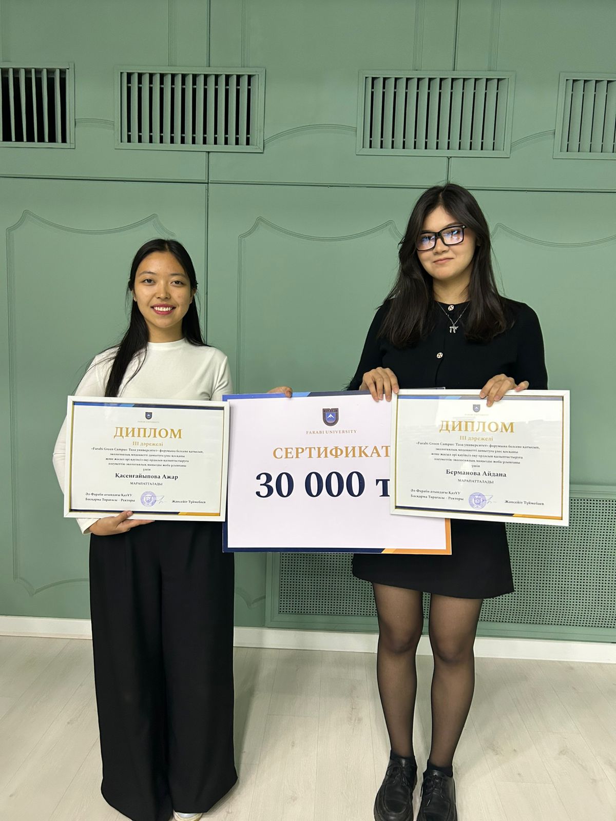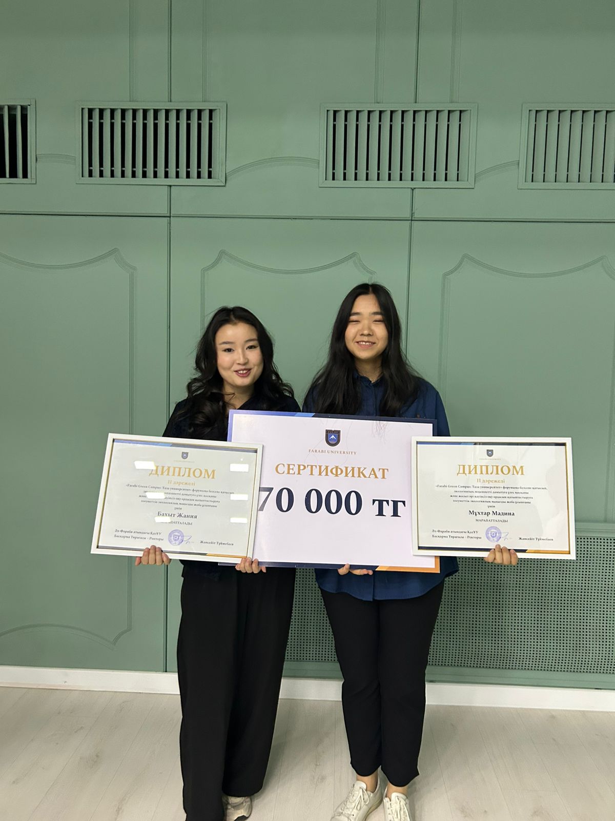 2nd Place: Azhar Kasengaiypova, Aidana Bermanova, 4th-year students of the educational program “6B05202 – Ecology”.