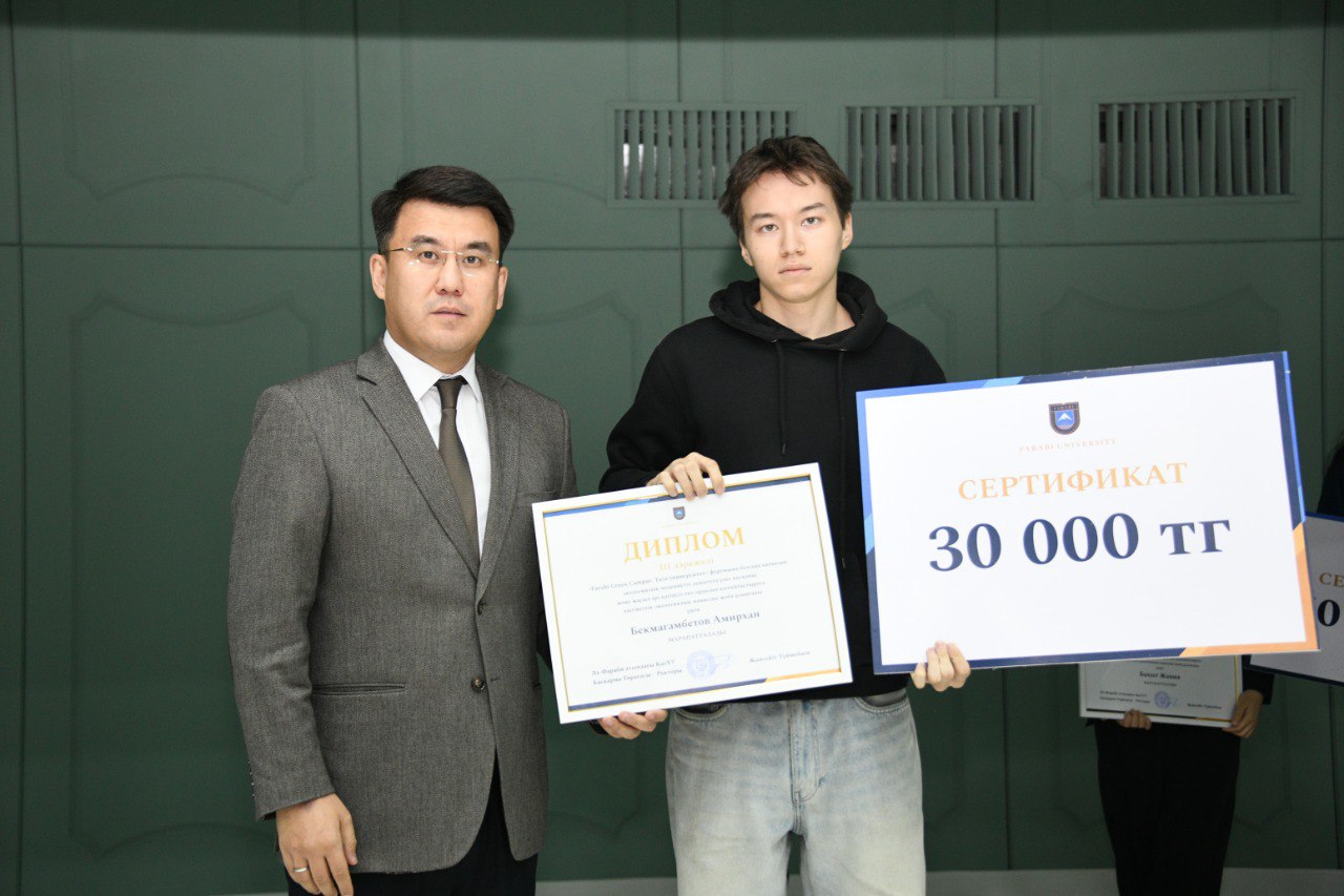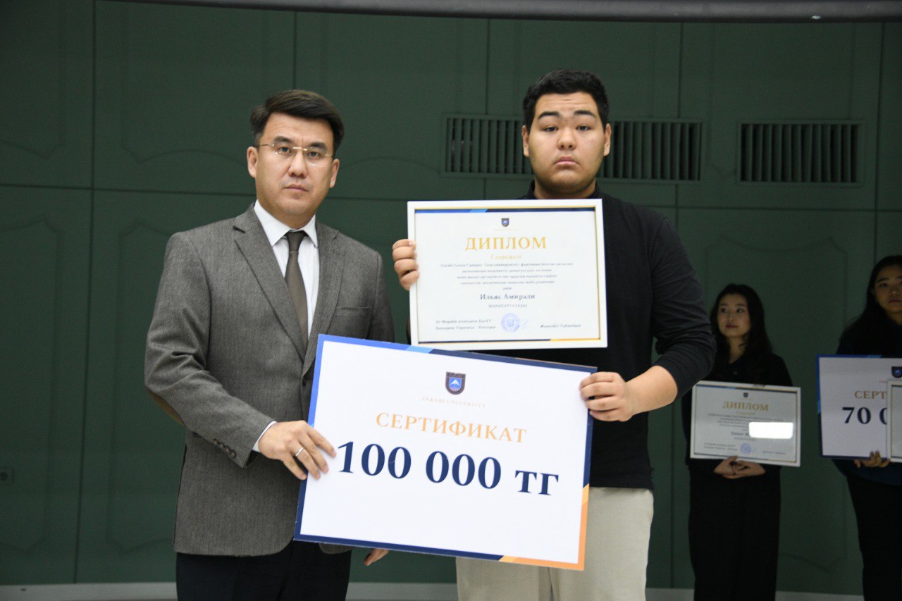 География және табиғатты пайдалану факультеті бойынша I орынды «EcoMap Campus» жобасының авторы, 1-курс докторанты Ұлан Мұхтаров иеленді.
