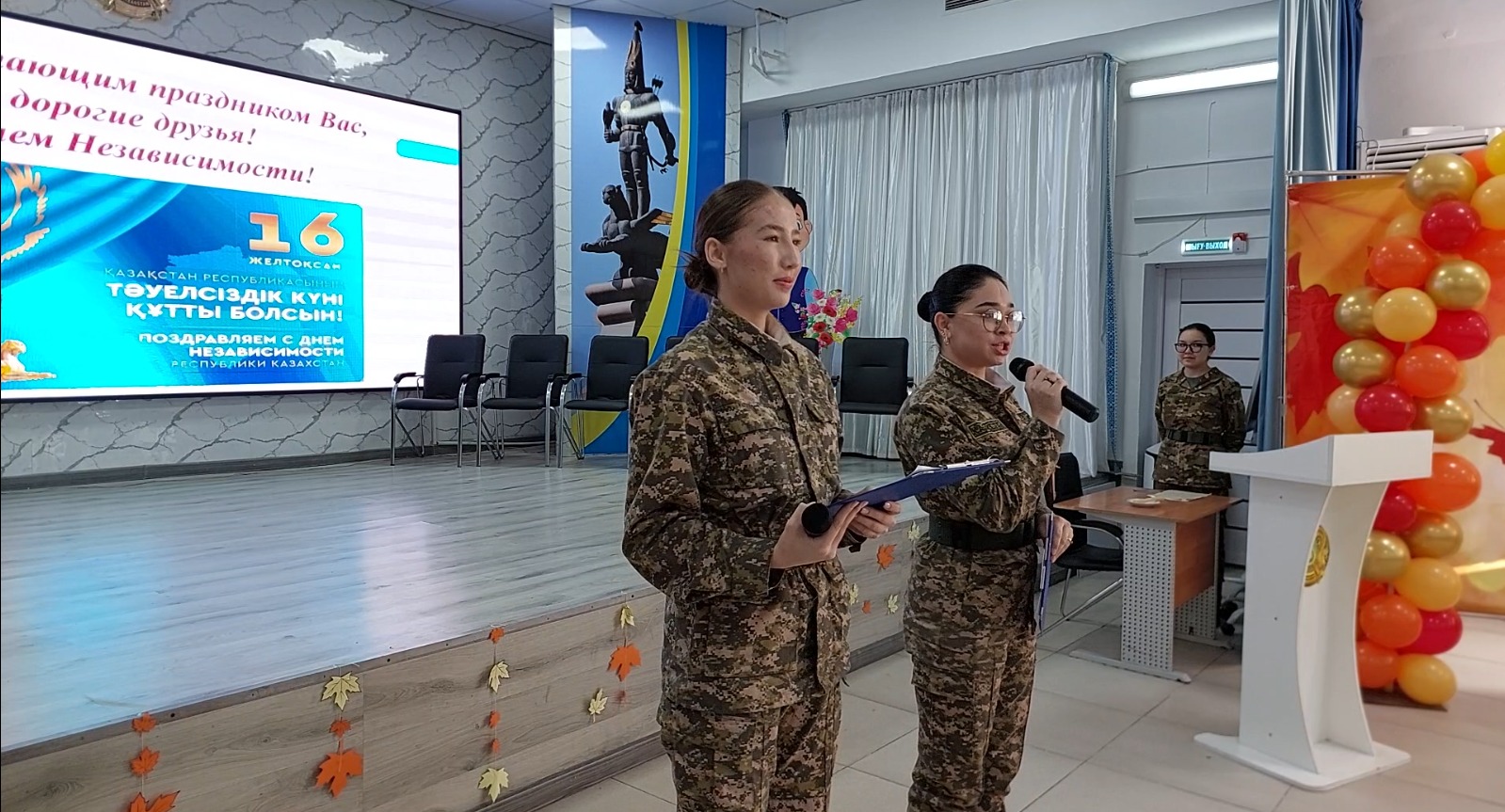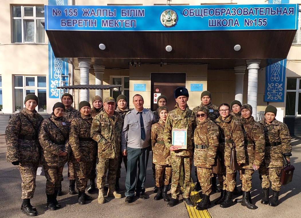 Әл-Фараби атындағы ҚазҰУ Әскери кафедрасының студенттері Алматы қаласы Әуезов ауданындағы №155 жалпы білім беретін мектептің жоғары сынып оқушыларына алдағы мемлекеттік мереке – Тәуелсіздік күніне арналған «Тәуелсіздік жолы» атты дәріс өткізді.