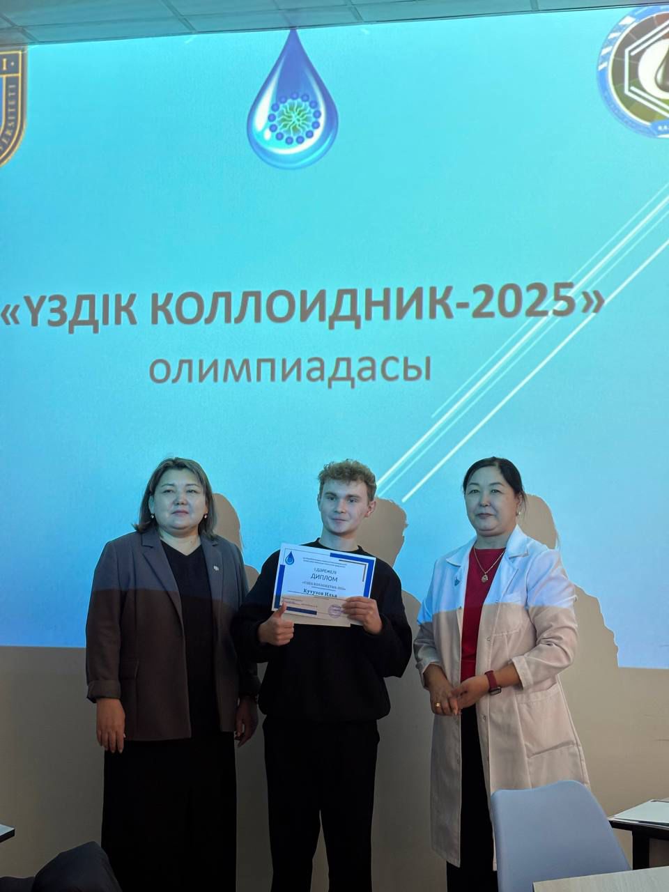 Олимпиадаға “6B05312- Өндірістің химиялық сараптамасы және аналитикалық бақылауы”, “6B05301-Химия”, “6B07201-Фармацевтикалық өндіріс технологиясы” БББ-ның 3 курс студенттері қызығушылық танытты. Барлығы 26 студент қатысып, “Коллоидтық химиядан” теориялық дайындық пен практикалық құзыреттіліктің үйлесімділігін көрсетіп, бағалау критерийлері бойынша ең жоғары нәтижеге жеткендер: