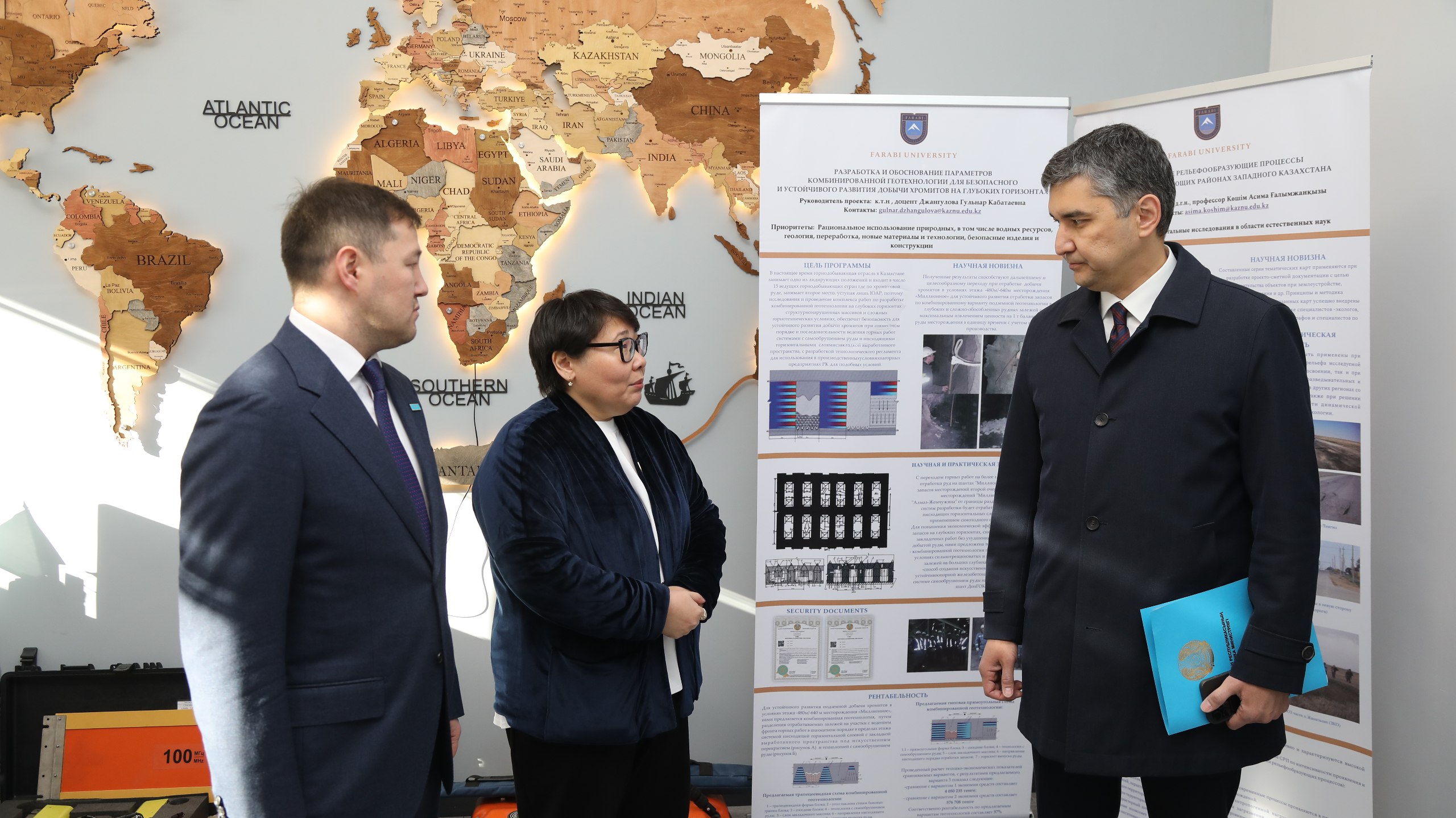 Жансейіт Түймебаев вице-министрге ҚазҰУ-дың жетістіктерін таныстырып, жасалған келісім энергетика саласындағы зерттеулерді жаңа деңгейге көтеруге ықпал ететінін жеткізді. «ҚазҰУ ғалымдары химия, математика, физика салалары бойынша озық технологияларды және инновациялық жобаларды жүзеге асыруда. Алдағы уақытта аталған салалар бойынша әріптестік байланыс орнатып, ортақ жобаларды іске қосуға болады», – деді ректор.