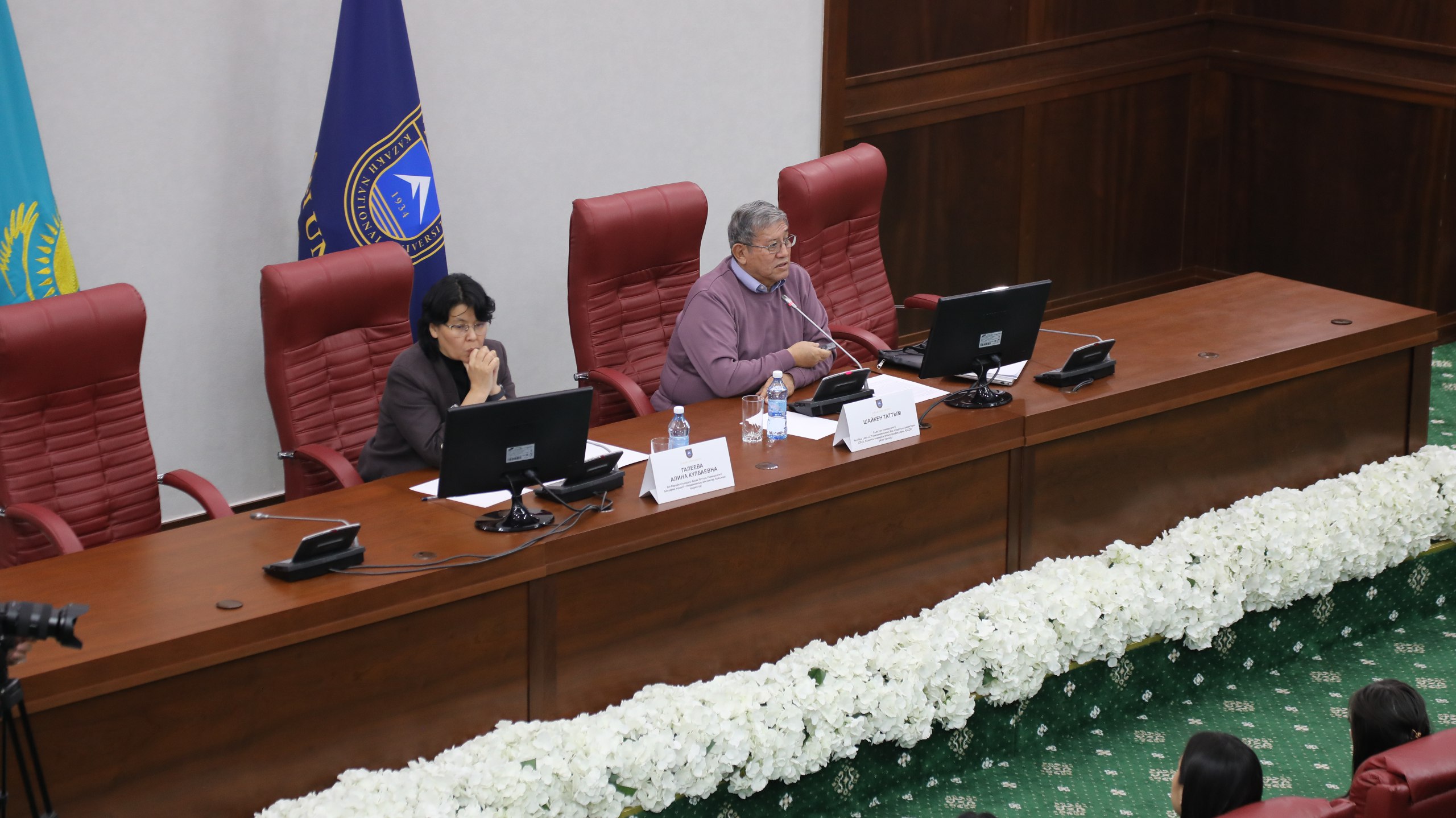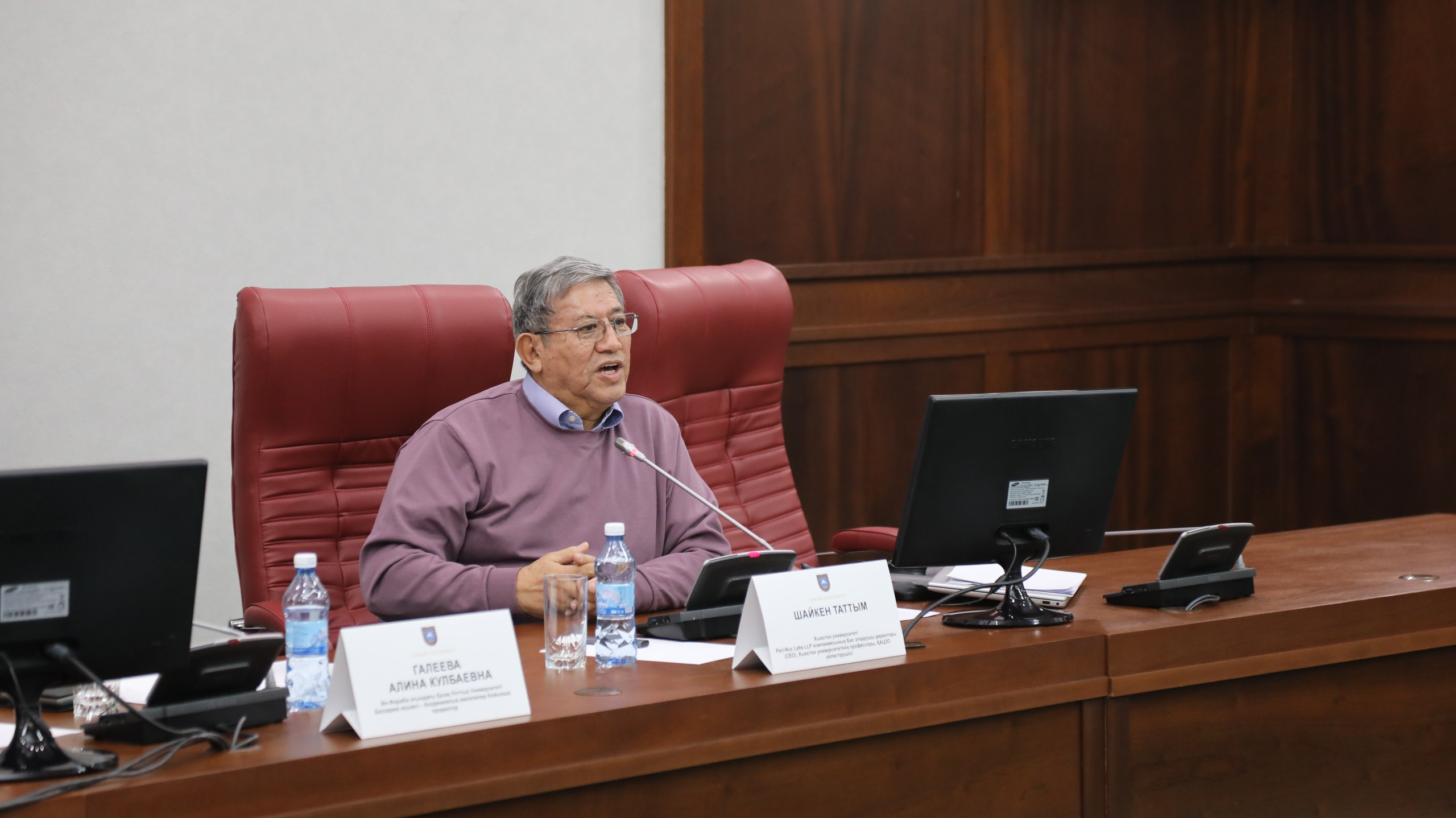 Белгілі ғалымды ҚазҰУ-дың Басқарма мүшесі – академиялық мәселелер жөніндегі проректор Алина Галеева таныстырды. Профессор Шайкен Тәттім – ҚазҰУ-дың биология және биотехнология факультетінің түлегі. Ол – Peri-Nuc Labs LLP зертханасының негізін қалаушы әрі бас директоры, Хьюстон университетінің Инновациялық паркі ресми резиденті және Baylor College of Medicine зерттеуші-профессоры.