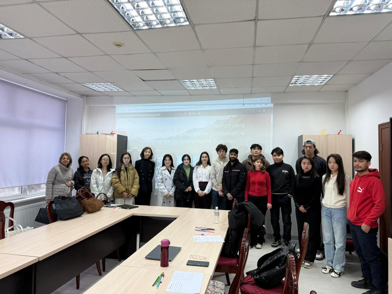 Магистрантка второго курса Фатима Хамзаева провела исследовательский воркшоп «Water Diplomacy Simulation Lab: Cooperative Governance for Sustainable Futures» в рамках практики по подготовке диссертации под научным руководством Гульнары Байкушиковой в Ресурсном центре ООН Казахского национального университета им. аль-Фараби.