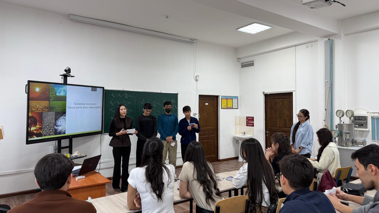 Сабақ қорытындысында кафедра өкілі Сагимбаева Лида Абсултанқызы іс-шараның тәрбиелік маңызын атап өтіп, студенттерді ғылыми білімді климаттық мәселелерді шешуге қолдануға шақырды.