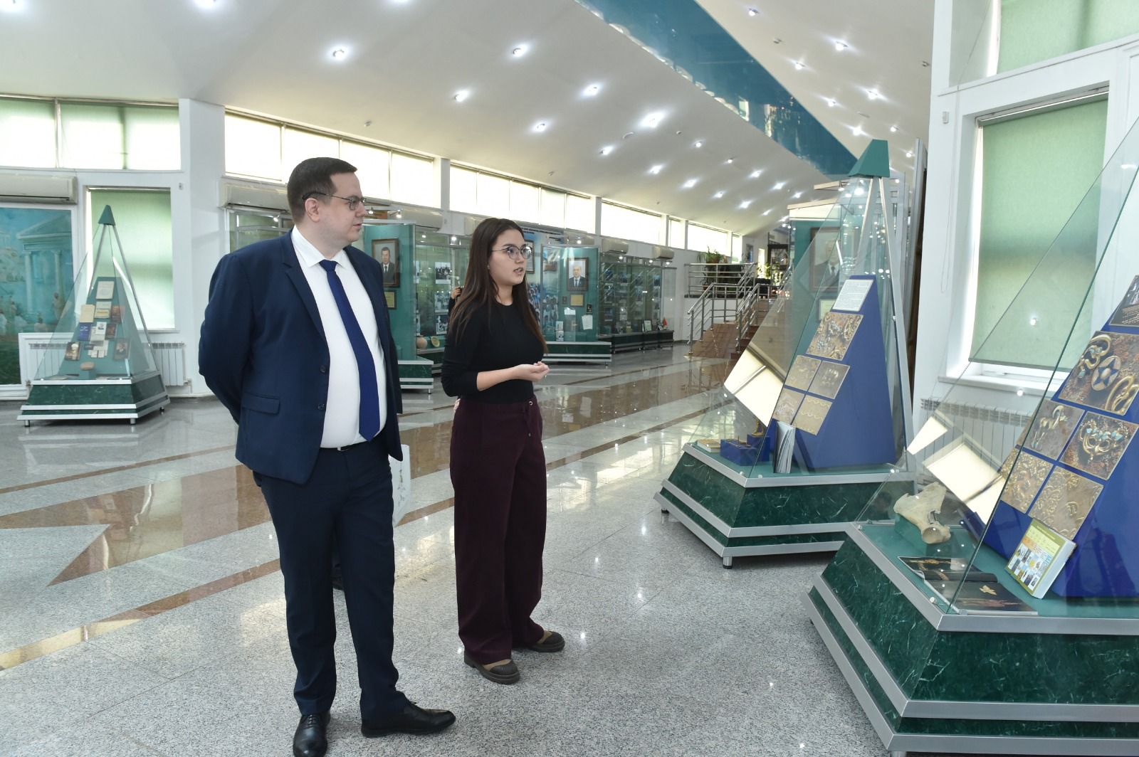 Today, the museum of al-Farabi Kazakh National University welcomed a delegation from the Pushkin Institute of the Russian Language (Moscow). The guests explored the history of KazNU, viewed the museum’s exhibitions, and learned about the university’s key scientific and educational achievements.