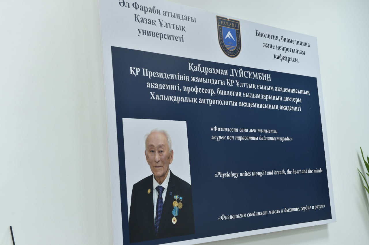 Әл-Фараби атындағы Қазақ ұлттық университетіндегі ғылыми зертханаға ҚР Президенті жанындағы Ұлттық ғылым академиясының академигі, көрнекті ғалым, ұстаз, отандық физиология ғылымының негізін қалаушылардың бірі Қабдрахман Дүйсембиннің есімі берілді.