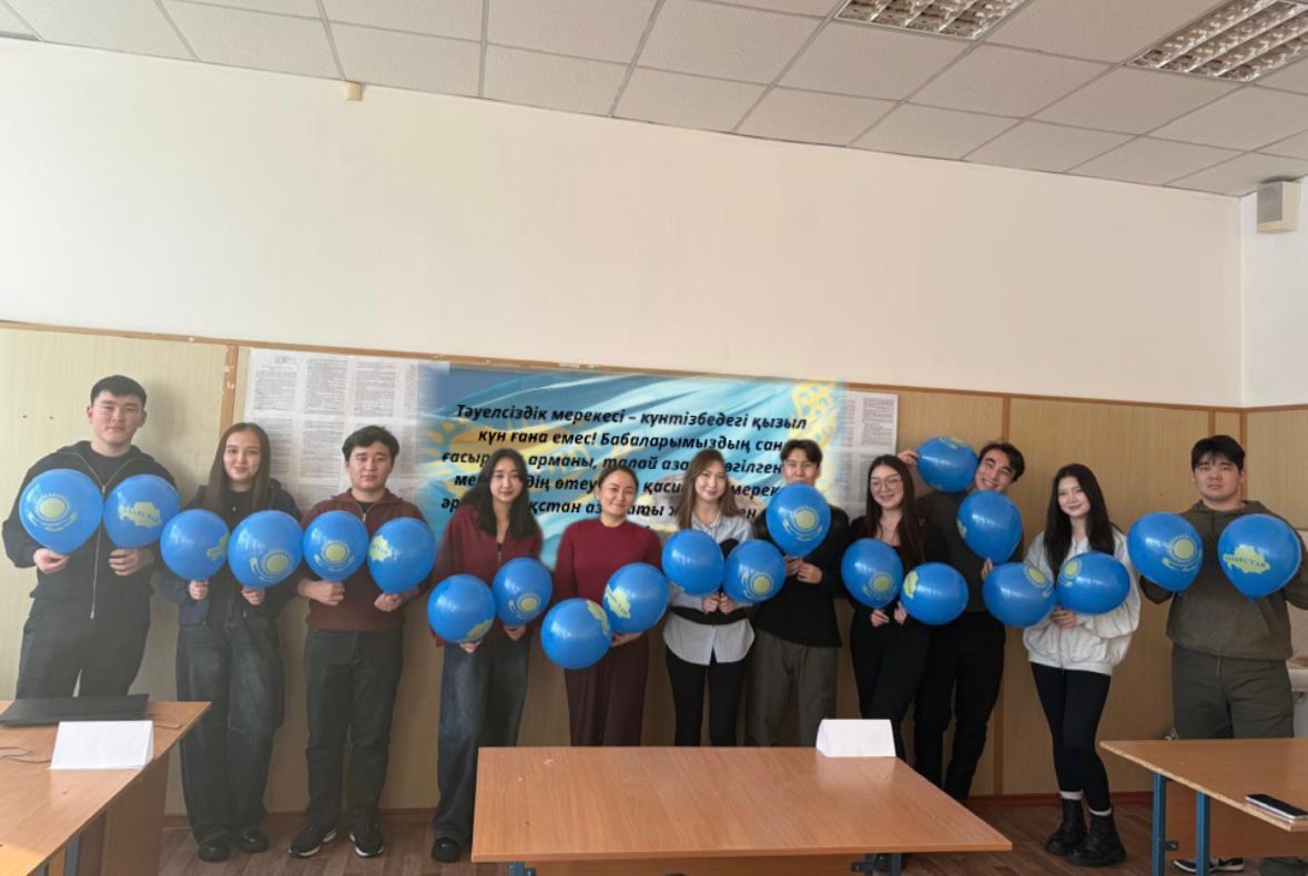 On December 12, 2025, the UNESCO Chair for Sustainable Development, together with 2nd-year students of the specialty "Environmental Protection and Life Safety," held a curator-led open class titled "Independence – the Core Value," dedicated to the Independence Day of the Republic of Kazakhstan. The event was organized under the guidance of Aigul Dikhanbaevna Baibotayeva.