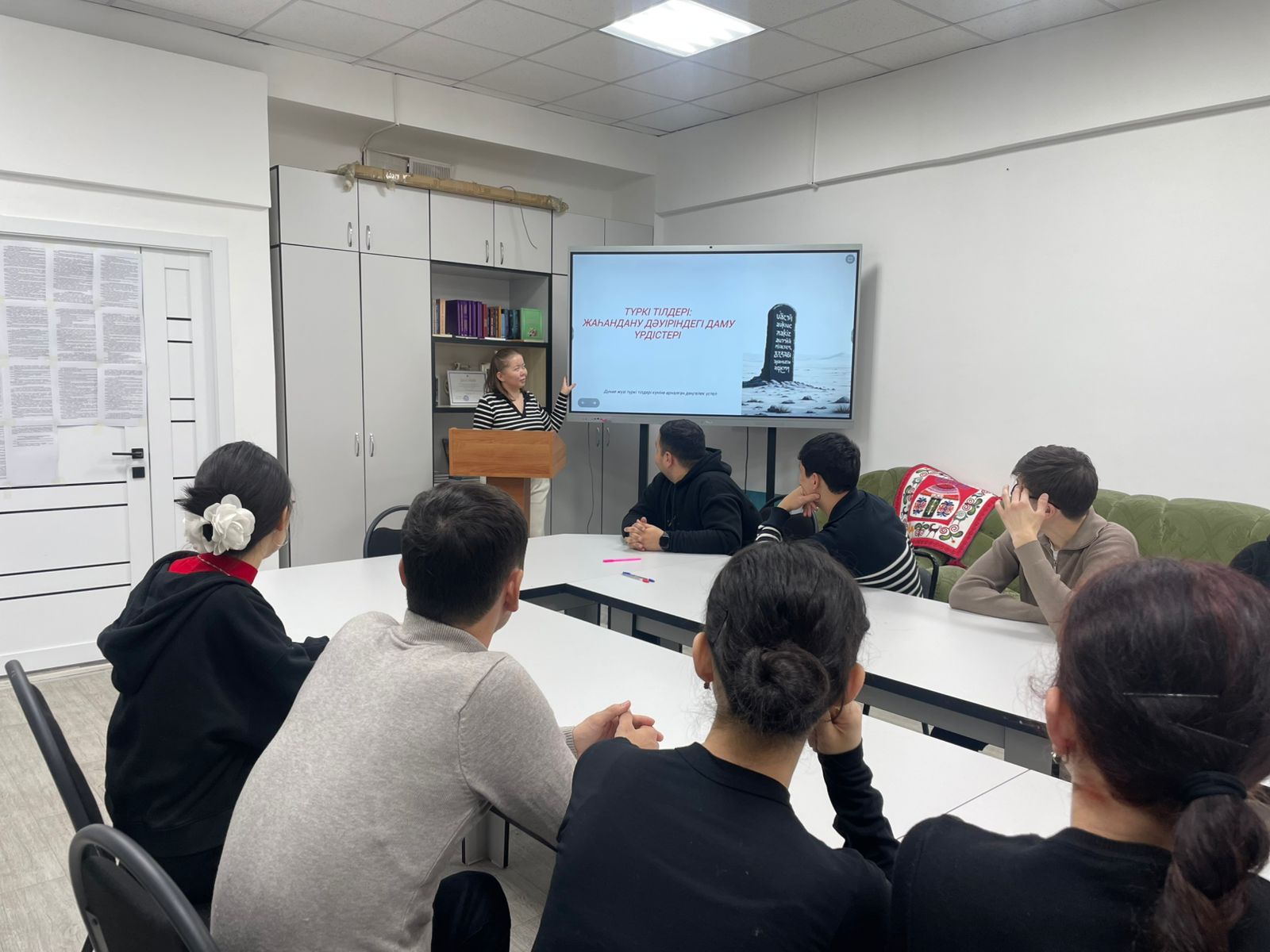 2025 жылдың 15 желтоқсанында Түркітану және тіл теориясы кафедрасында «Түркі тілдері: жаһандану дәуіріндегі түркі тілдері» тақырыбында дөңгелек үстел өтті. Іс-шараны кафедра меңгерушісінің оқу-әдістемелік және тәрбие ісі жөніндегі орынбасары, оқытушы Серікқазықызы Ақбота және «6B02209 - Түркітану» мамандығының 3-курс студенттері ұйымдастырды.