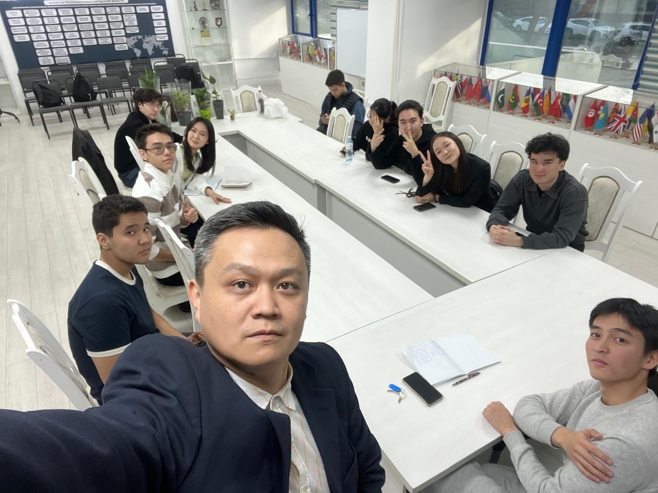 Студенттер арасындағы «Талейран» дипломатиялық клубының президенті — 2-курс студенті Жолдасбаев А.К. Ол да кездесуді ұйымдастыру мен өткізуге белсенді қатысты. Өз сөзінде ол командалық жұмыстың маңыздылығын атап өтіп, клубтың одан әрі дамуы оның мүшелерінің бастамашылдығы мен белсенділігіне тікелей байланысты екенін айтты.