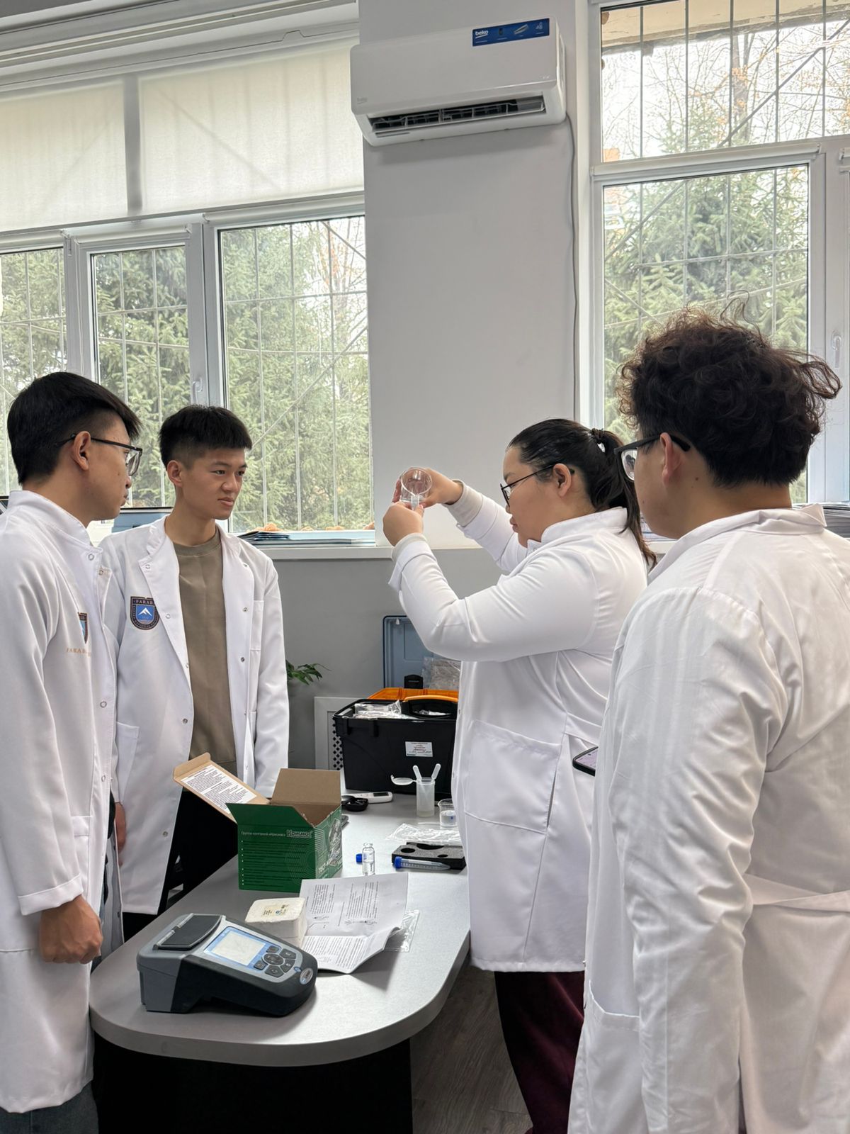 International master’s students enrolled in the “7M05207 – Hydrology” educational program at the Faculty of Geography and Environmental Management participated in a comprehensive assessment of drinking water quality within the framework of SDG 6 - “Clean Water and Sanitation”. The activity aimed to familiarize international students with the university’s research capacities, infrastructure, and modern technologies applied in the monitoring and assessment of water quality.
