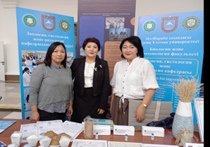 «Кең жұртшылыққа арналған білім беру іс-шаралары» ТДМ 4 аясында Биология және биотехнология факультетінің кәсіптік бағыт-бағдар беру жұмысына жауапты профессор-оқытушылар құрамы 2025 жылғы 3-ші қарашада Алматы қаласының мектептерінің кәсіби бағдар беру мамандарына арналған оқыту семинарына белсенді қатысып, семинарға келген мектеп мұғалімдері мен оқушыларға факультет құрамындағы кафедралар (биотехнология, ботаника және агроэкология, зоология, гистология және цитология, молекулалық биология және генетика, биофизика, биомедицина және нейроғылымдар) бойынша іске асырылып жатқан білім беру бағдарламаларын, оқу-әдістемелік ерекшеліктерін және академиялық ұтқырлық мүмкіндіктерін жан-жақты таныстырды. Факультеттің білім беру бағдарламаларымен таныстыру көрмесіне Алматы қаласының орта мектептерінің 175-тен аса кәсіптік бағыт-бағдарға жауапты мамандары мен оқушылар қатысты.