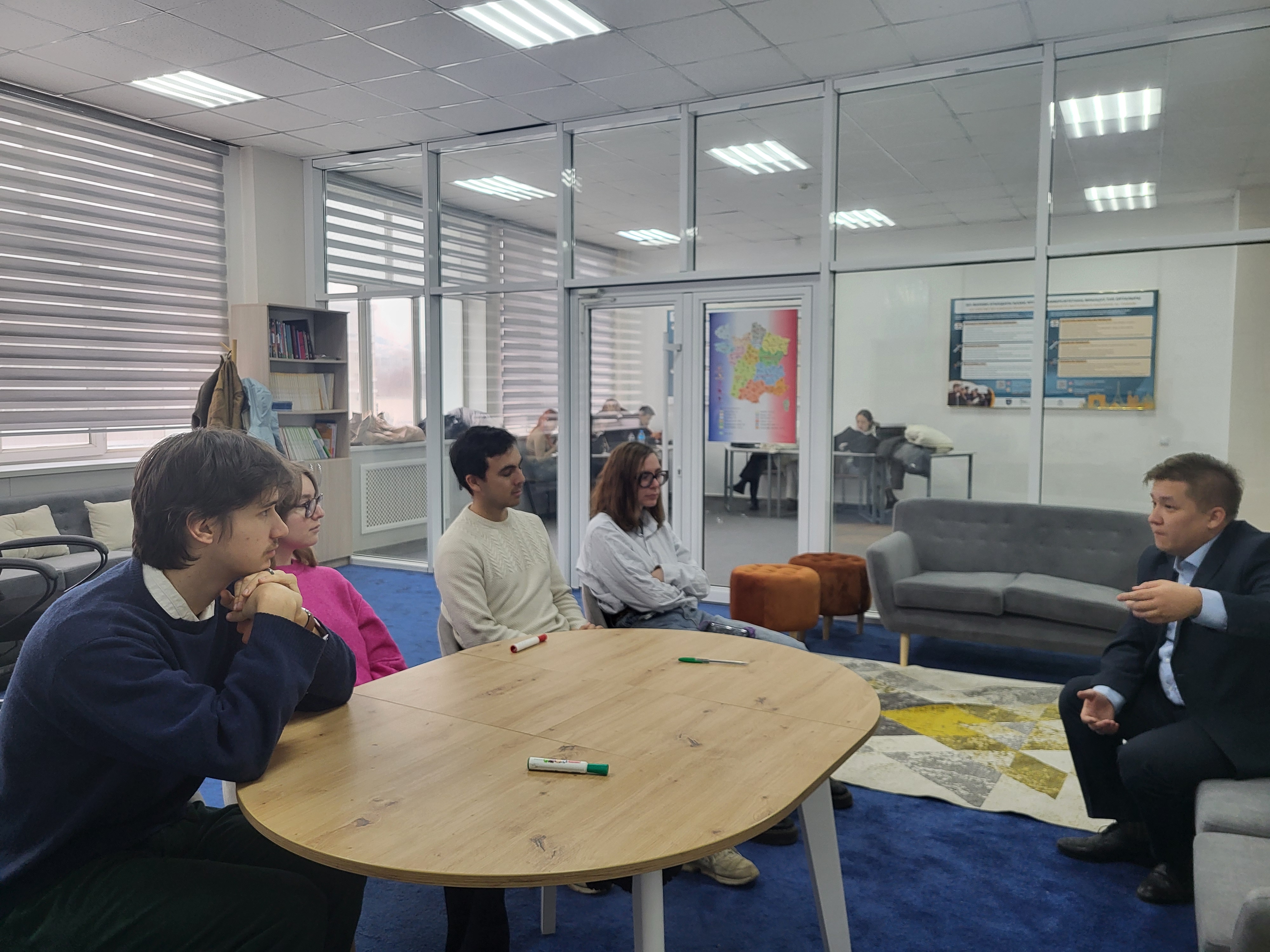 Механика-математика факультетінде БҰҰ-ның Тұрақты даму мақсаттарына (ТДМ) қол жеткізу мәселелеріне арналған жұмыс кездесуі өтті. Кездесуге факультет деканы және деканның орынбасары Бектемесов Ж. М. мен Сабирова Р. Ф., Геоэнергетика орталығының директоры және Француз орталығының директоры Agnes Bousset, Француз альянсының гранты есебінен жұмыс істейтін француз тілі оқытушысы Nastia Wawrzyniak, сондай-ақ Францияның жетекші университеттерінің студенттері мен магистранттары — Estelle Valérie Charlet, Claude Christian Panithan Foucaud, Renaud Le Gall-Rousset қатысты.