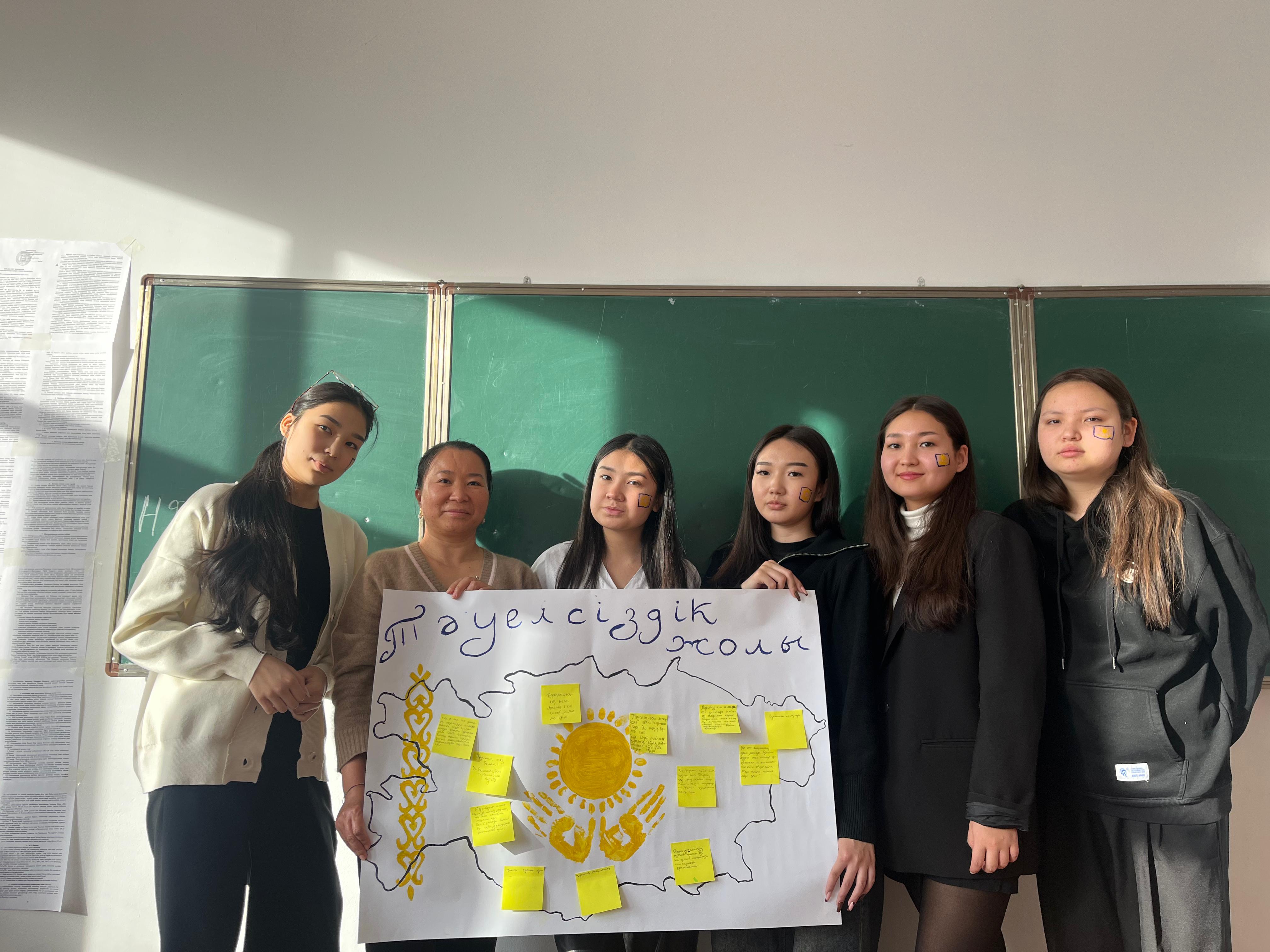 Студенттердің белсенді қатысуын арттыру мақсатында тәуелсіздік тарихына қатысты сұрақ-жауап форматындағы танымдық ойындар ұйымдастырылды. Бұл әдіс студенттердің қығызушылығын оятып, тарихи деректерді меңгеруіне ықпал етті.