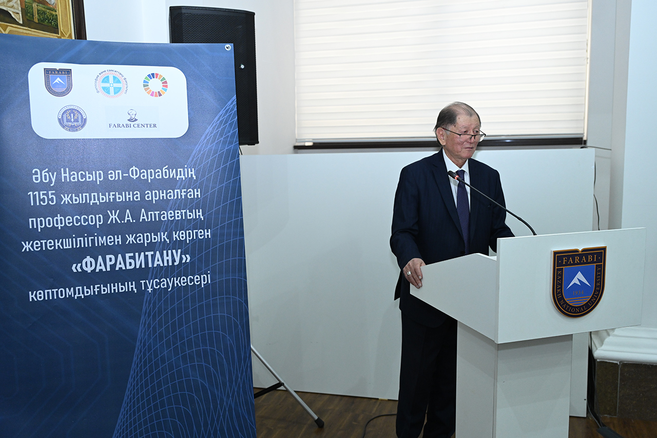 В Казахском национальном университете имени аль-Фараби состоялась торжественная презентация 20-го тома многотомного издания «Фарабитану», приуроченного к 1155-летию со дня рождения Абу Насра аль-Фараби. В научном мероприятии приняли участие руководство университета, отечественные и зарубежные философы-ученые, преподаватели, магистранты и докторанты, а также читатели университетской библиотеки.