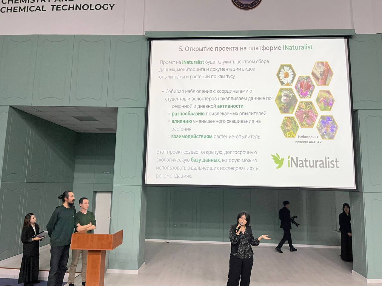 1 орын - "ARALAP: тозаңдандыратын жәндіктерді қолдау және сақтау үшін кампусты экологиялық көгалдандыру", Ғалымжанов Ислам, Жанбасбаева Сымбат, Нұрханов Руслан