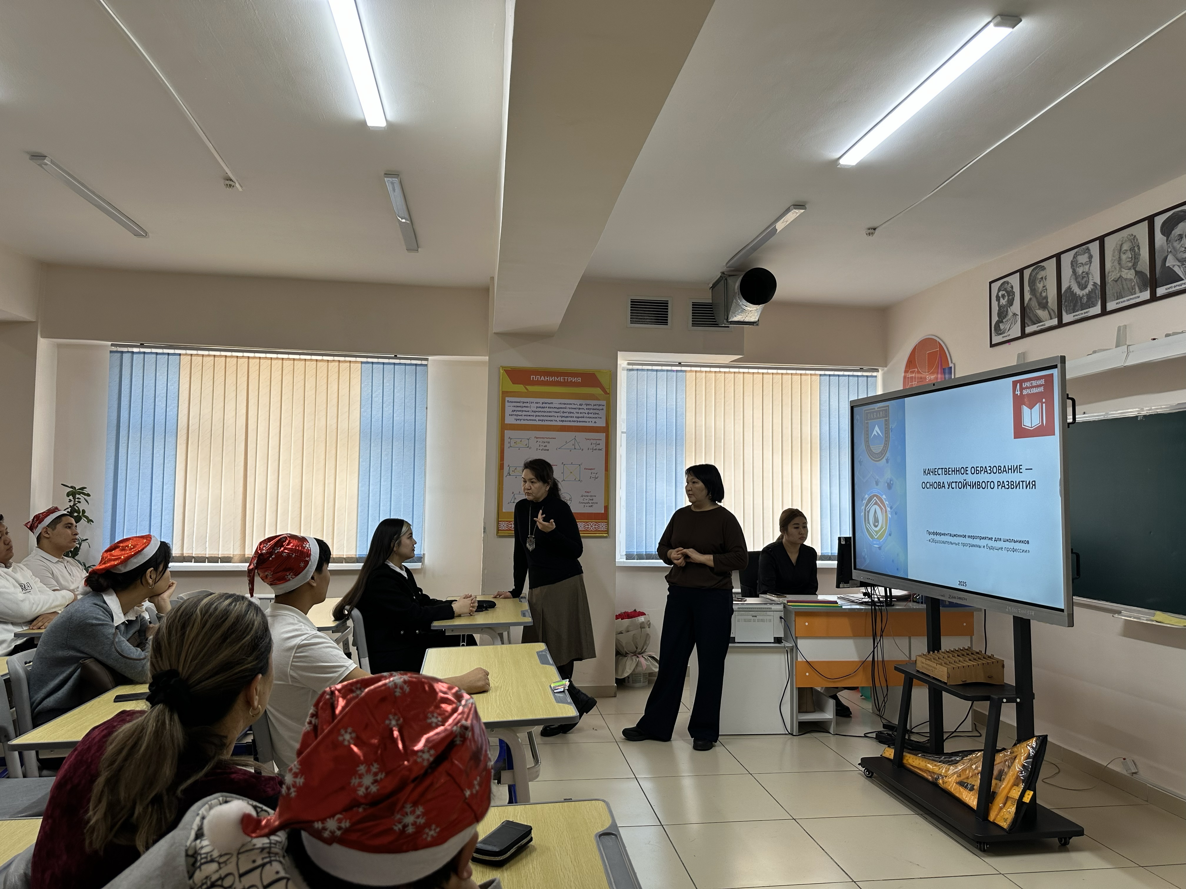 Мероприятие было организовано в рамках 4-й Цели устойчивого развития (ЦУР) — «Качественное образование». Профориентационное мероприятие под названием «Качественное образование – основа устойчивого развития» состоялось 25 декабря 2025 года в офлайн-формате. Партнёром мероприятия выступила общеобразовательная школа №203 города Алматы. Основной целью мероприятия стало профессиональное ориентирование школьников, направленное на осознанный выбор будущей профессии.