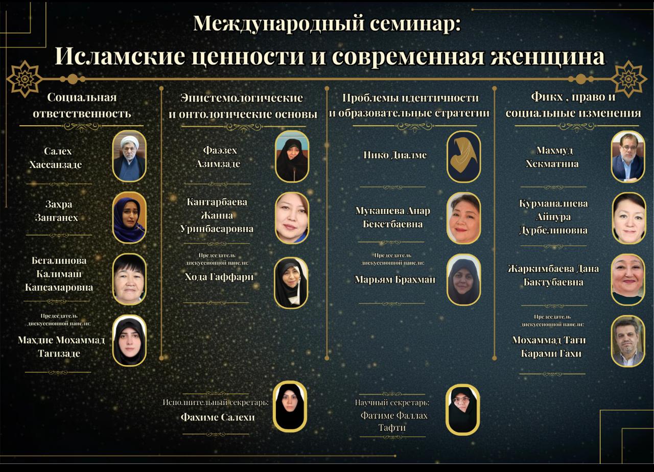 В ходе семинара были представлены современные исследования, посвящённые роли и месту мусульманских женщин в Казахстане. С основным докладом выступила заведующая кафедрой религиоведения и культурологии Казахского национального университета имени аль-Фараби, доктор философских наук, профессор Курманалиева Айнура Дурбелиновна. В докладе были всесторонне рассмотрены эволюция образа мусульманской женщины в казахстанском обществе, взаимосвязь религиозных ценностей и современных социальных процессов, а также культурно-философские аспекты проблем гендерного равенства.