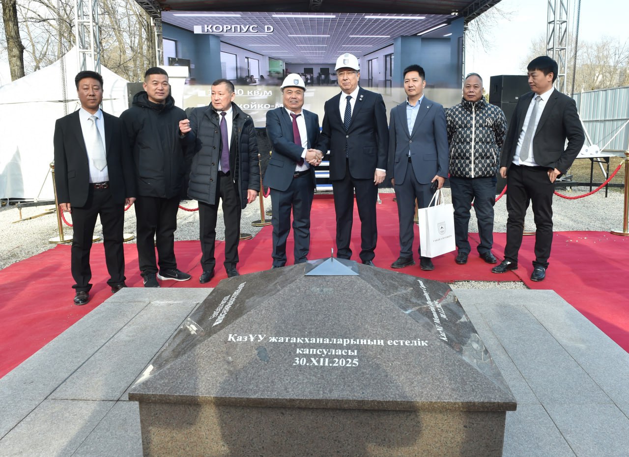 В кампусе Казахского национального университета имени аль-Фараби состоялась торжественная церемония закладки капсулы, посвященная строительству новых общежитий для студентов на 5000 мест.