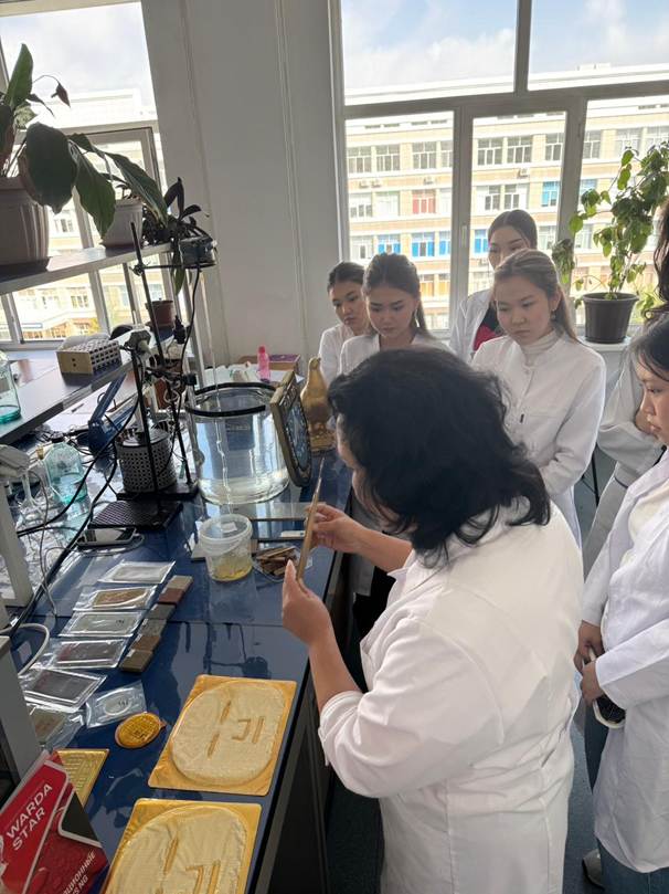 19 сентября 2025 года доцент кафедры химии и технологии органических веществ, природных соединений и полимеров А.К. Токтабаева ознакомила студентов казахского отделения 403-404 групп образовательной программы «6В07201 - Технология фармацевтического производства» с научным направлением кафедры и подробно рассказала о современных тенденциях в области полимерных материалов, их применении в фармацевтике и биомедицине. Особое внимание было уделено исследовательским проектам кафедры, связанным с синтезом биосовместимых полимеров, разработкой полимерных носителей для лекарственных веществ и созданием биодеградируемых материалов. Студенты также получили информацию о перспективах участия в научных грантах, публикациях и возможностях продолжения обучения в магистратуре и докторантуре. Мероприятие организовано в рамках реализации Целей устойчивого развития в области качественного образования (44.3.4 Образовательная деятельность за пределами университетского комплекса).