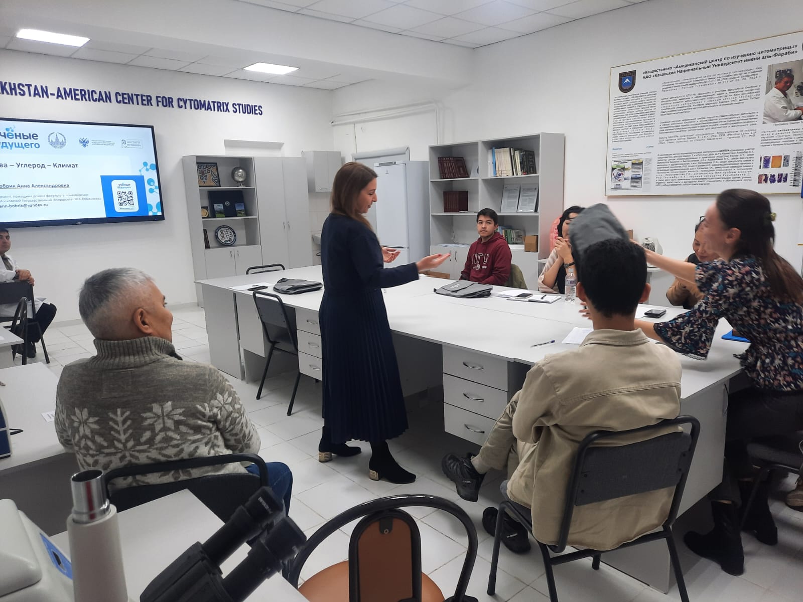 Факультет биологии и биотехнологии КазНУ имени аль-Фараби стал площадкой международной инициативы «Ученые будущего» для проведения тренинга эксперта программы Анны Александровны Бобрик, кандидата биологических наук, доцента кафедры общего почвоведения факультета почвоведения МГУ имени М.В. Ломоносова.