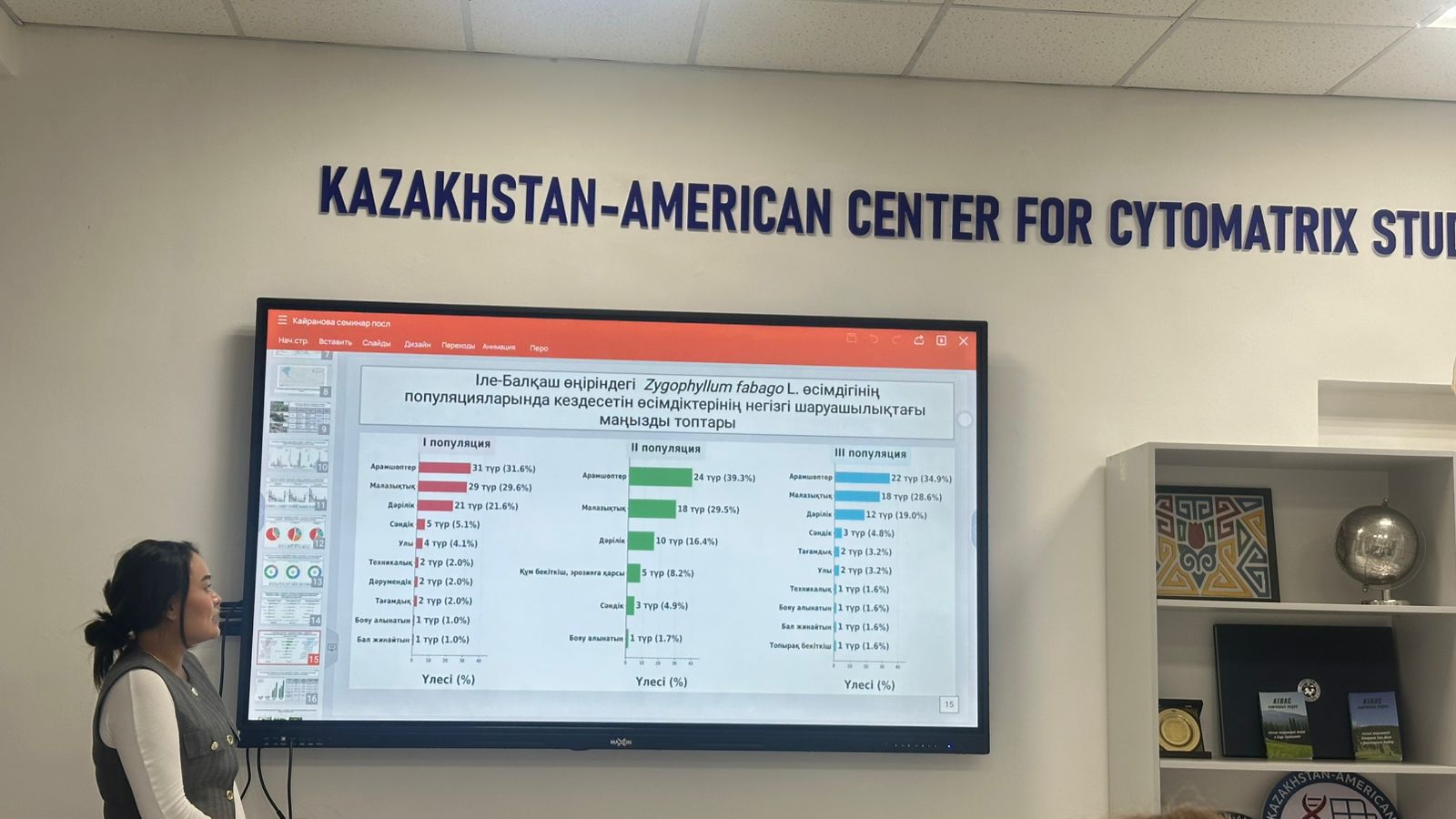 Іс-шараға профессор-оқытушылар құрамының 10 өкілі және 15 докторант қатысты. Дөңгелек үстел аясында б.ғ.к., қауымдастырылған профессор Мамурова Асем Тлеужановнаның жетекшілігімен ботаника және агроэкология кафедрасының 3-курс PhD докторанты Кайранова Гүлзат Қанатқызы «Іле-Балқаш өңірі жағдайында Zygophyllum fabago L. өсімдігінің ценопопуляцияларының қазіргі жағдайын бағалау» бойынша зерттеу нәтижелерімен баяндама жасады.
