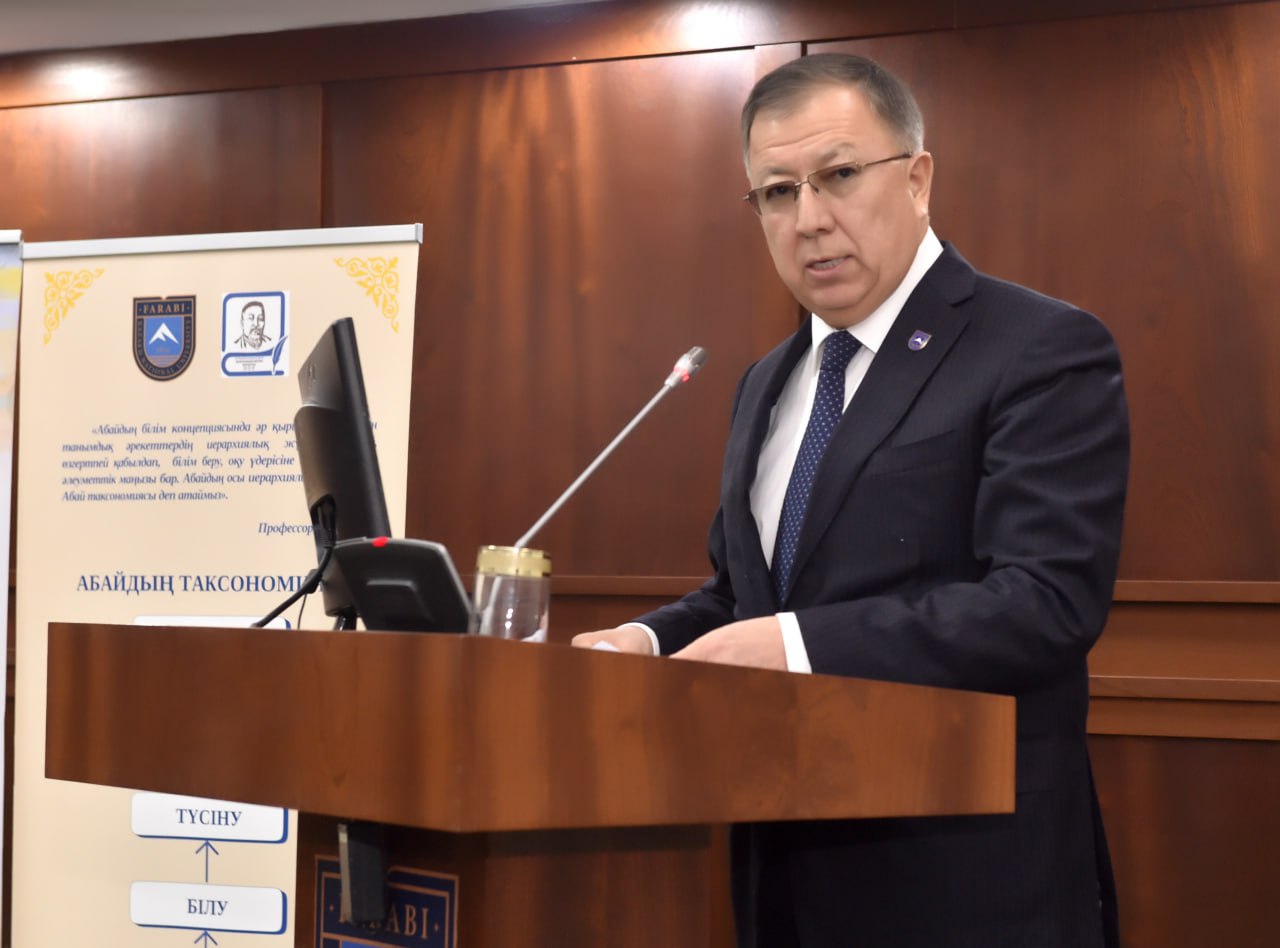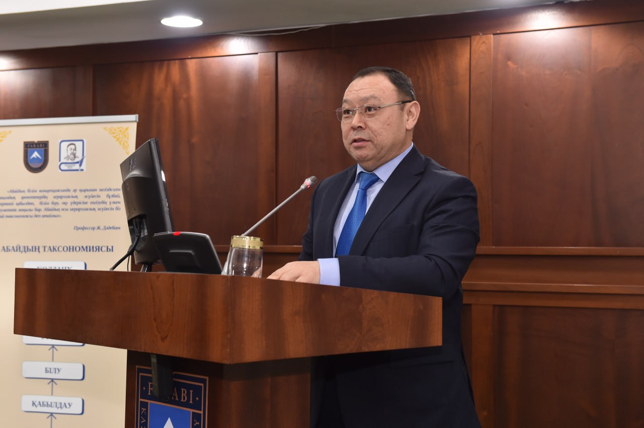 Әл-Фараби атындағы Қазақ ұлттық университетінде «Абайдың кісілік кодексі» және «Абай ілімі» оқу пәндері әзірленіп, білім беру процесіне енгізілді. Университет ғалымдары әзірлеген «Абайдың кісілік кодексі» оқу корпустары мен жатақханаларға ілінді. Бұл ауқымды бастаманы басқа ЖОО-лар мен мектептерде жүзеге асыруды ұсынамыз. «Абайтану. Таңдамалы еңбектер» сериялық басылымының 1-50 томдары, «Абайтану антологиясы» сериялық басылымының 1-10 томдары жарық көрді, сондай-ақ «Абайтану антологиясы» атты цифрлық форматтағы интеллектуалдық электрондық ресурстар базасы қалыптастырылды. Аталған жұмыстарды ҚазҰУ базасындағы Абай ғылыми-зерттеу институтының ғалымдары жүзеге асырды», – деді ректор.
