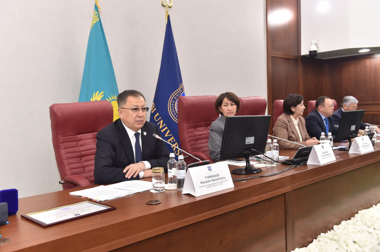 Жиынды Әл-Фараби атындағы ҚазҰУ Басқарма Төрағасы – Ректор Жансейіт Түймебаев ашып, оқу ордасында Абайдың 180 жылдығына орай өткен ғылыми, мәдени және ағартушылық іс-шаралардың қорытындысы туралы ақпарат берді.