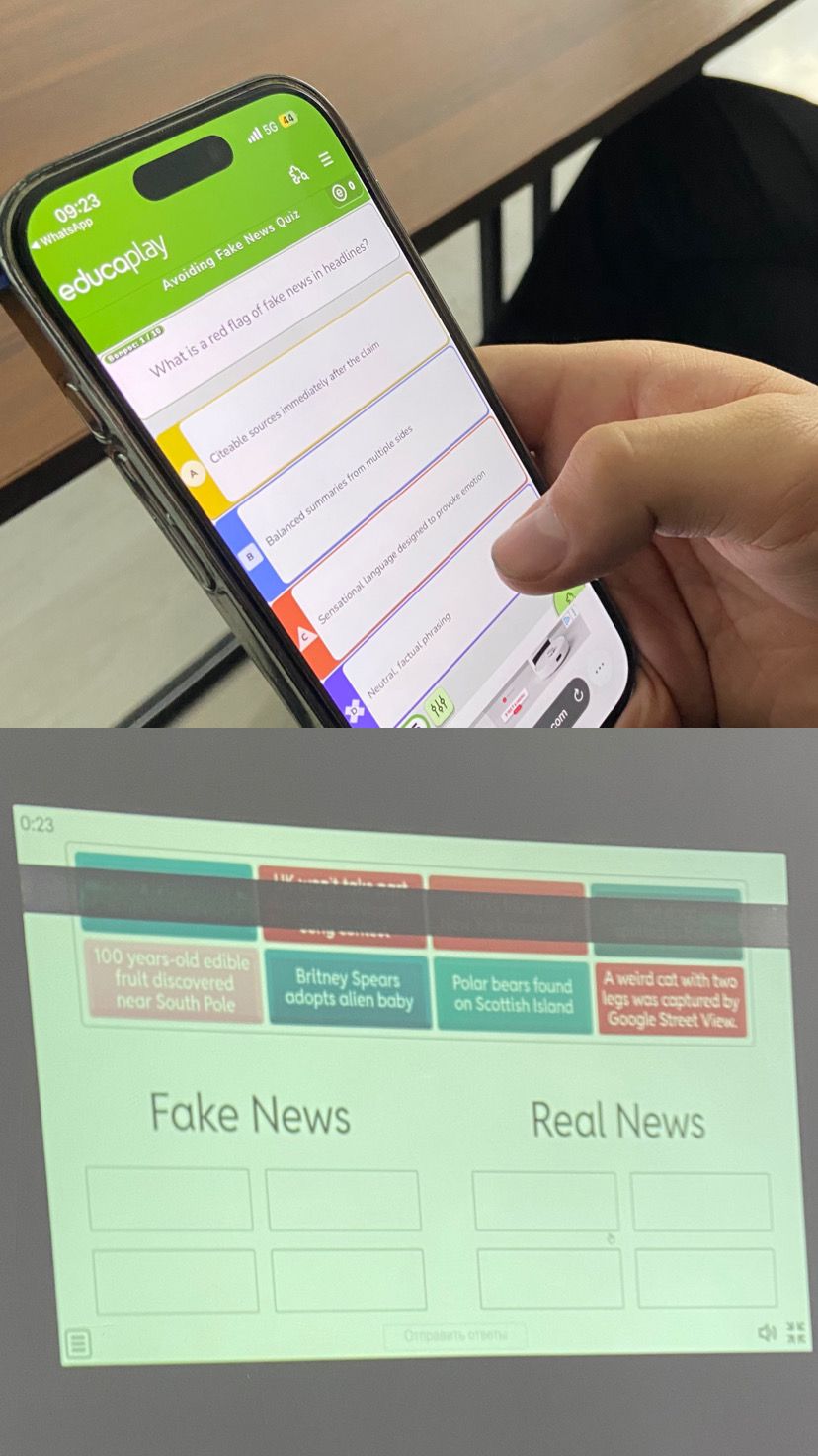 Занятие прошло в интерактивной форме, присутствовало 15 студентов. В ходе урока обсуждались признаки современных фейковых новостей, а также способы и цели их распространения. В практической части были рассмотрены примеры новостей с различных платформ.