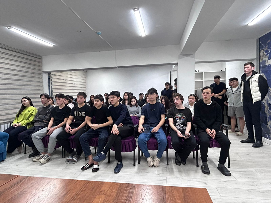 Кездесуге Бостандық аудандық полиция басқармасының инспекторы Сейдуллаев У.Н. қатысып, жастар арасында жиі кездесетін құқық бұзушылықтар, олардың салдары және заң алдындағы жауапкершілік туралы кеңінен баяндады. Сонымен қатар, спикер құқықтық сауаттылықтың қоғамдағы тұрақтылық пен қауіпсіздікті қамтамасыз етудегі рөліне тоқталып, студенттерді заңды құрметтеуге және құқықтық нормаларды қатаң сақтауға шақырды.
