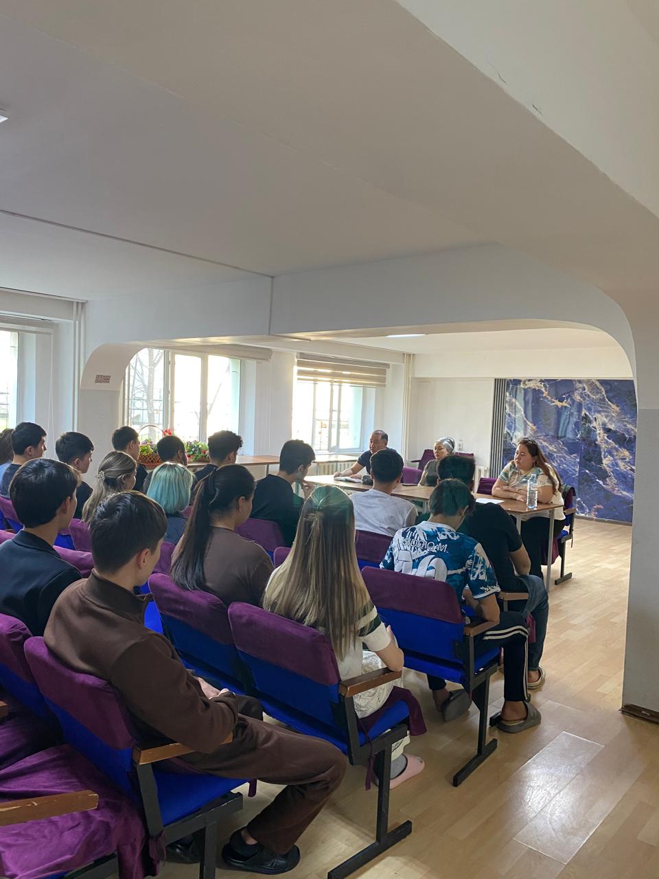 The meeting was attended by Bolat Kusainovich Abenov, Deputy Dean for Social and Educational Affairs of the Faculty of Mechanics and Mathematics and Senior Lecturer. During the session, issues related to moral values, the preservation of honor and dignity, personal responsibility, and adherence to public order were discussed with students.