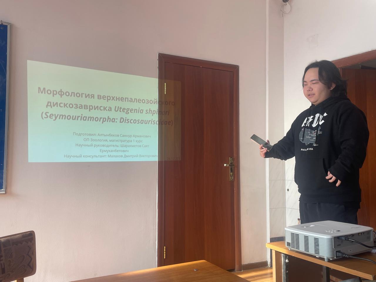 - Алтынбеков С.А. Жоғарғы палеозойлық дискозаврисктің Utegenia shpinari морфологиясы бойынша баяндама жасады.