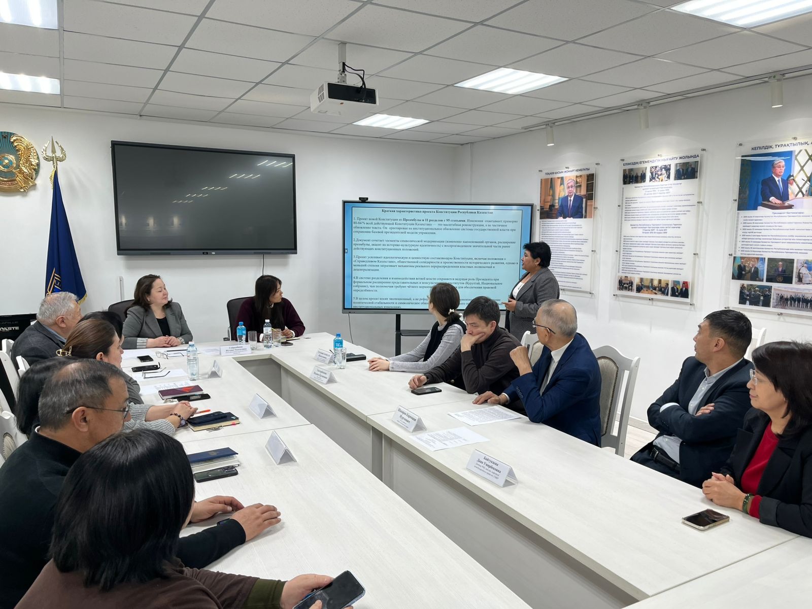 The main speakers were PhD in Law, Associate Professor A.Zh. Tusupova, Doctor of Law, Professor K.N. Shakirov, and PhD in Law, Associate Professor M.K. Samaldykov. In their presentations, they addressed key issues related to the separation and interaction of branches of power within the new Constitution draft, as well as matters of justice, citizenship, international treaties, the exercise of the right to peaceful assembly, and other significant aspects of constitutional transformation.