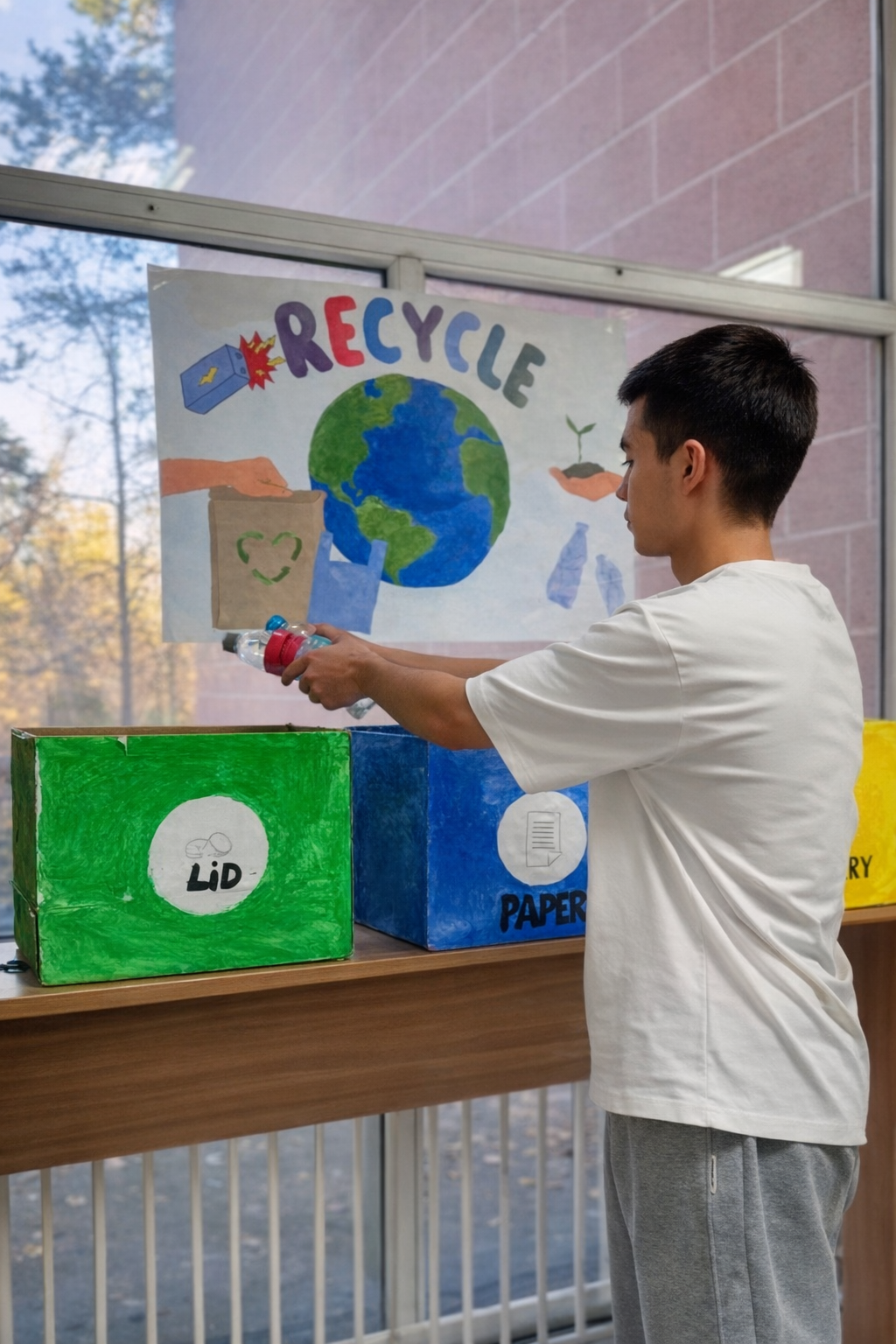 Челлендж аясында тұрмыстық және өндірістік қалдықтарды жинау, пластик пен қағаз қалдықтарын бөлек сұрыптау, қайта өңдеудің маңыздылығы туралы ақпараттық бейнематериалдар дайындау, экологиялық ағарту лекциялары мен түсіндіру жұмыстары ұйымдастырылды. Сонымен қатар, кампус аумағында тазалық акциялары өткізіліп, студенттер арасында саналы тұтыну мәдениетін қалыптастыру мен экологиялық әдеттерді күнделікті өмірге енгізу мәселелері кеңінен насихатталды.