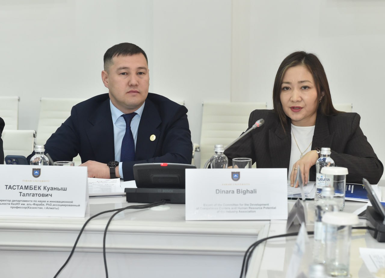 Жиынға министрлік өкілдері, университет басшылығы, өндірістік сектор сарапшылары және салааралық қауымдастықтардың өкілдері қатысты. Модератор ретінде ҚазҰУ-дың ғылыми-инновациялық қызмет жөніндегі проректоры – Басқарма мүшесі Марғұлан Ибраимов сөз сөйледі.