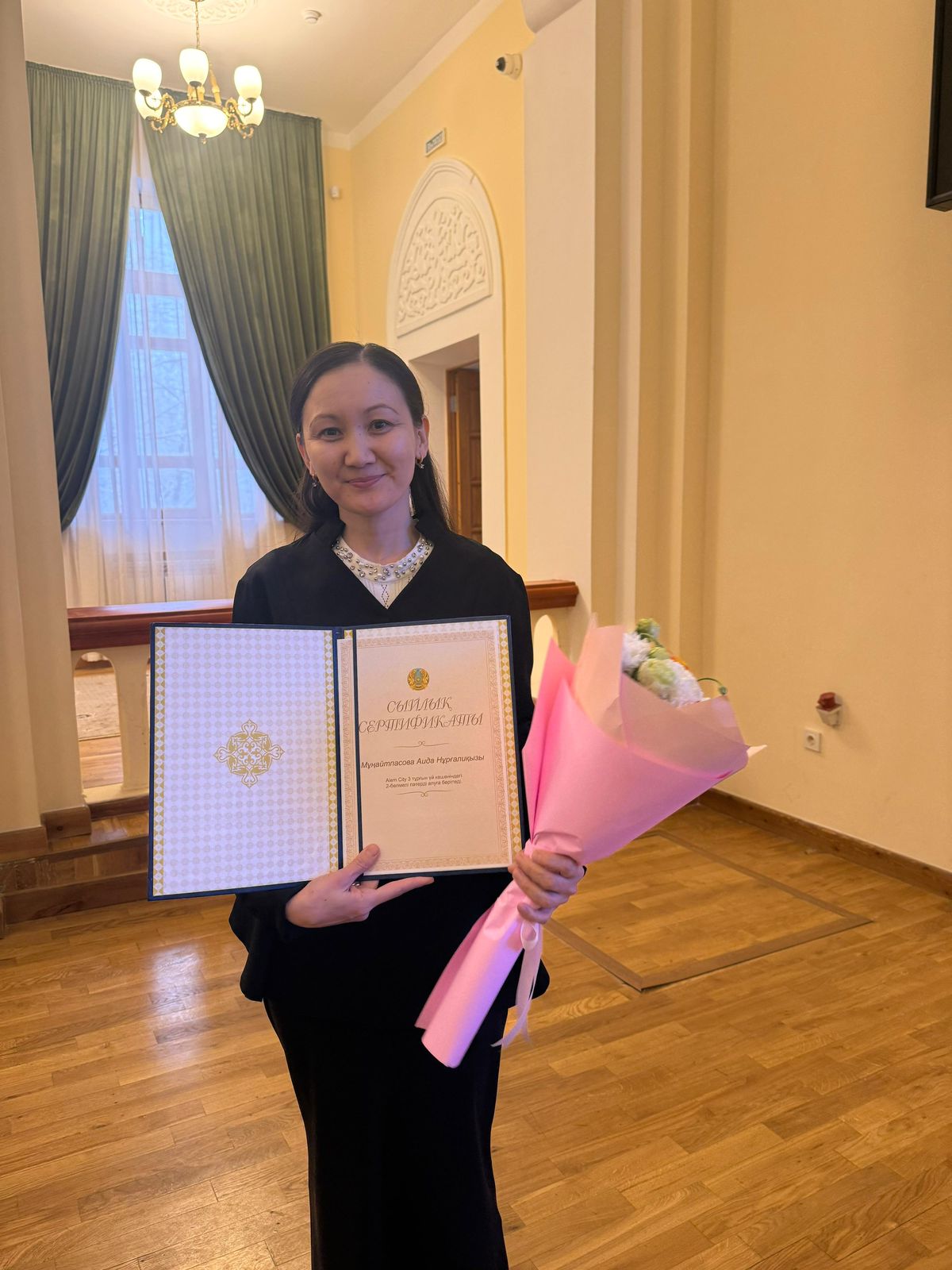 В рамках поручения Главы государства Касым-Жомарта Токаева по развитию отечественной науки и поддержке молодых исследователей 14 молодым ученым были вручены сертификаты на получение квартир. Среди обладателей сертификатов – старший преподаватель Казахского национального университета имени аль-Фараби Аида Мунайтпасова.