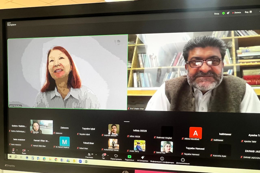 Пешавар университетінің профессоры, PhD доктор Шабир Ахмад Хан. Баяндама тақырыбы: «Intellectual history of Pakhtuns/Pashtuns in the context of Central and South Asia» («Орталық және Оңтүстік Азия контекстіндегі пахтундар/пуштундардың интеллектуалдық тарихы»). Өз баяндамасында профессор пахтундардың (пуштундардың) интеллектуалды дәстүрінің қалыптасу ерекшеліктерін тарихи және мәдени тұрғыда қарастырды. Профессор пуштун қоғамының интеллектуалдық мәдениетінің дамуындағы әдеби мұраның, діни ойдың, ауызша дәстүрлердің және қоғамдық-саяси идеялардың рөлін талдады.