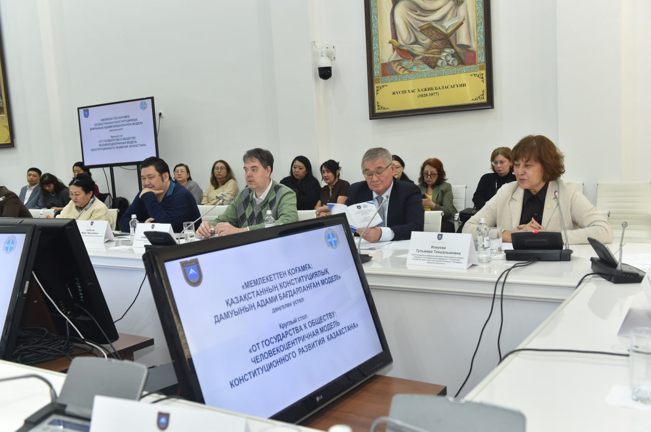 Әл-Фараби атындағы ҚазҰУ-да еліміздің жаңа Конституциясы жобасы бойынша академиялық тыңдаулар аясында «Мемлекеттен  – қоғамға: Қазақстанның конституциялық дамуының адамға бағдарланған моделі» тақырыбында дөңгелек үстел өтті. Шараға Конституциялық реформа жөніндегі мемлекеттік комиссия мүшелері, қоғамдық-саяси сарапшылар  және университеттің саясаттанушы, әлеуметтанушы, заңгер ғалымдары қатысты.