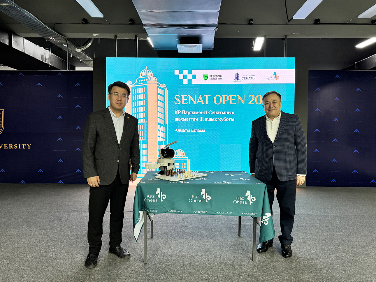Серіктестік байланыстарды нығайту мақсатында университетке жасанды интеллектімен жабдықталған заманауи шахмат роботы табысталды. Бірегей құрылғы оқу үдерісі мен жаттығу базасына енгізіліп, студенттерге ЖИ алгоритмдерін меңгеруге және спорттық шеберліктерін шыңдауға жаңа мүмкіндіктер ашады.