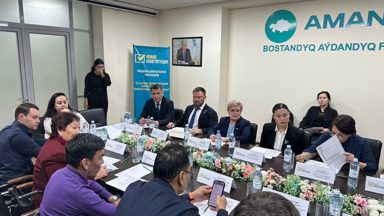 Декан юридического факультета Ахатов У.А., заведующая кафедрой теории и истории государства и права, конституционного и административного права, кандидат юридических наук, ассоциированный профессор Усеинова К.Р., доктор юридических наук, профессор Ибраева А.С. приняли участие во встрече Общенациональной коалиции «За Народную Конституцию Справедливого и Прогрессивного Казахстана!»