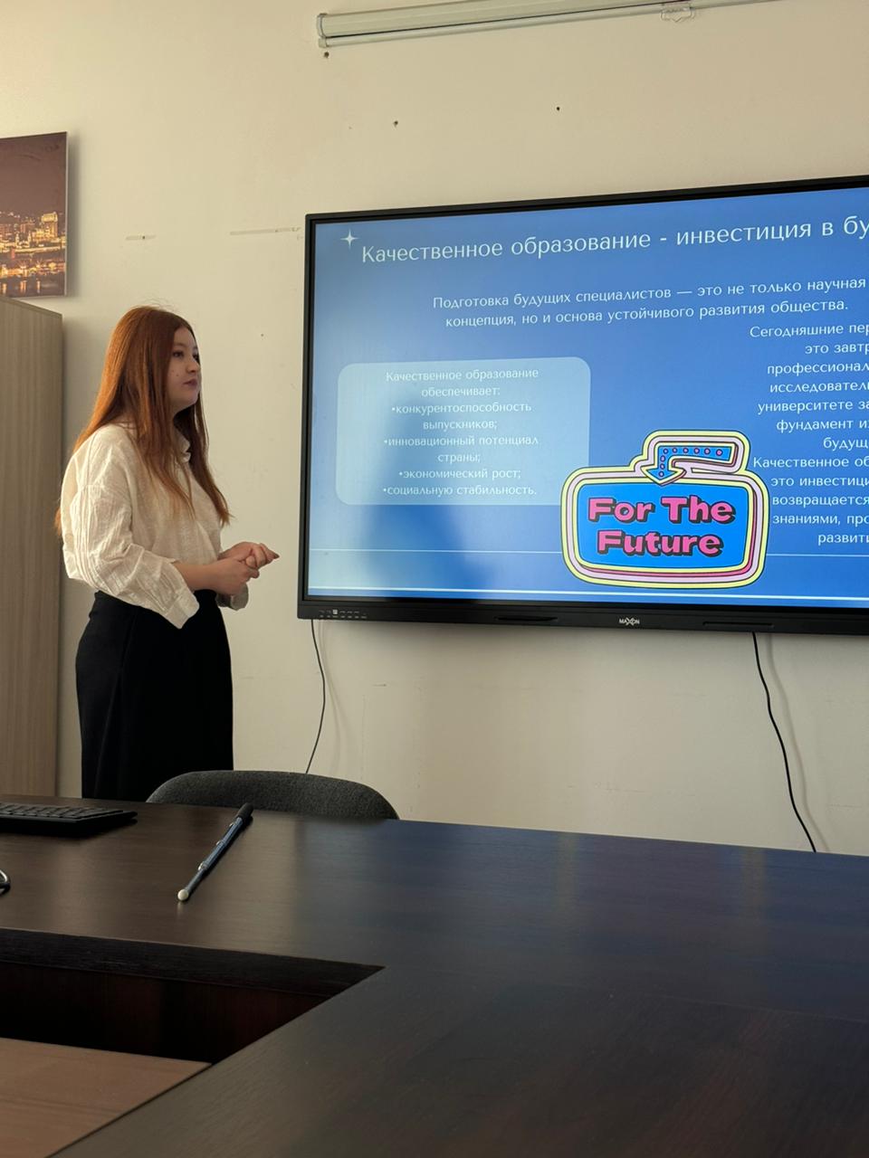 During the event, curator A. Kyrkymbekova and students delivered presentations on topical issues, emphasizing the strategic importance of quality education in shaping the country’s future.