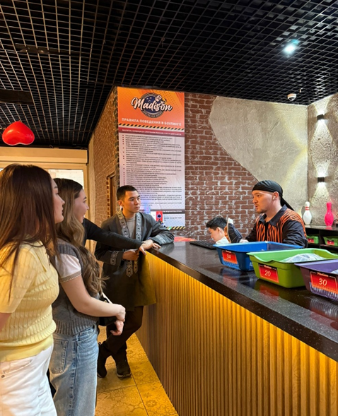On February 18, 2026, an off-campus lesson for Tourism students was organized by lecturer Beisakhmet A.A. as part of the course “Ethics and Etiquette in Tourism” at the еntertainment complex “Madison”.