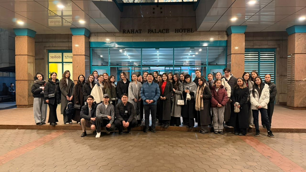 2026 жылдың 17 ақпанында мейрамхана ісі және қонақ үй бизнесі мамандығының екінші курс студенттері аудиториядан тыс іс-шара аясында Алматының жетекші қонақ үйлерінің бірі – Rahat Palace қонақ үйіне рекреациялық география және туризм кафедрасының аға оқытушысы Серік Момыновпен бірге барды.