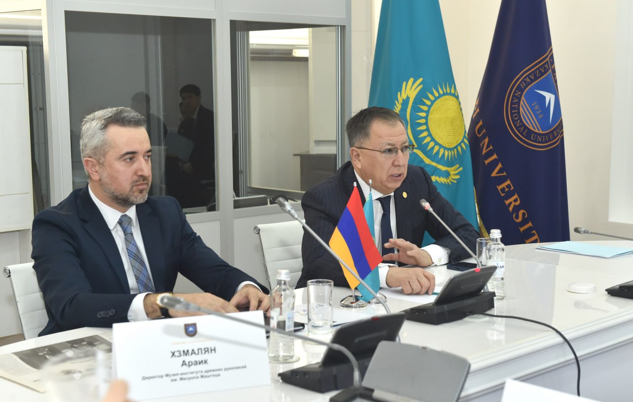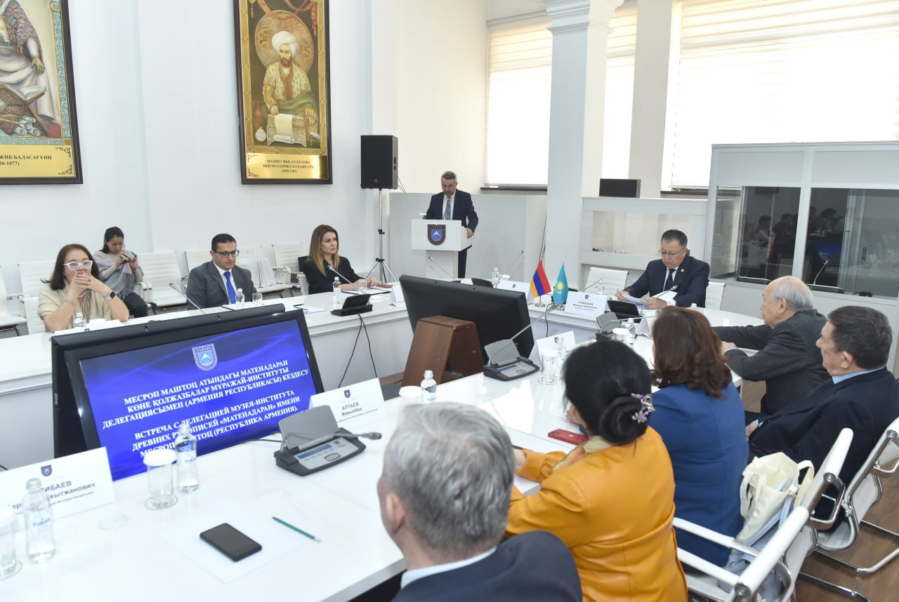 Со своей стороны директор «Матенадарана» Араик Хзмалян поблагодарил университетский коллектив за теплый прием и рассказал об истории института. По его словам, с момента основания «Матенадаран» занимается сбором, сохранением и изучением письменного наследия армянского и мирового народов, сегодня в его фондах хранится десятки тысяч древних рукописей и архивных документов. Он также отметил, что историко‑культурные связи между казахским и армянским народами развивались веками на основе взаимного уважения и духовной преемственности.