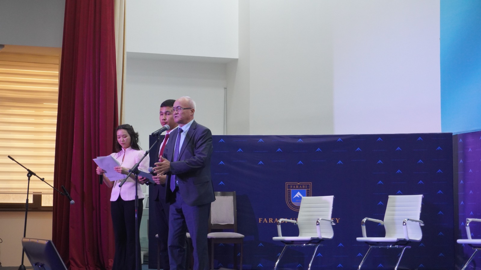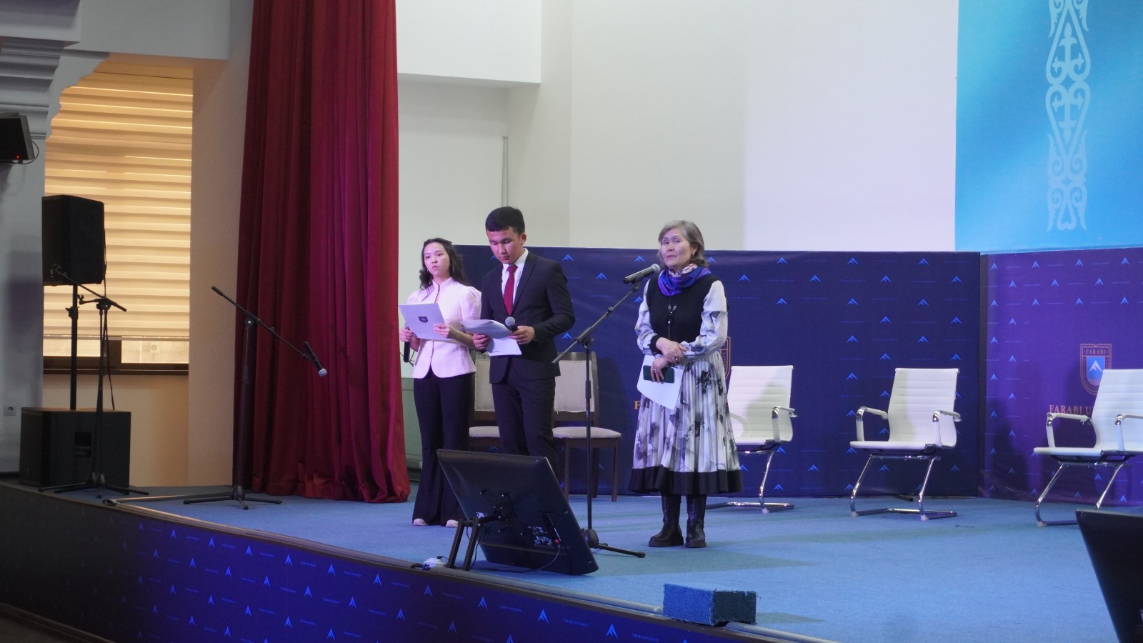 The Auezov Literary Association, based at the Abay Research Institute at Farabi University, organized a university-wide literary and educational evening entitled "Three Baitereks and Mukagali." The evening was dedicated to the 132nd anniversary of the births of S. Seifullin, I. Zhansugurov, and B. Mailin, and the 95th anniversary of "Mukagali." A minute of silence was observed in the first minutes of the event in memory of the four poets.