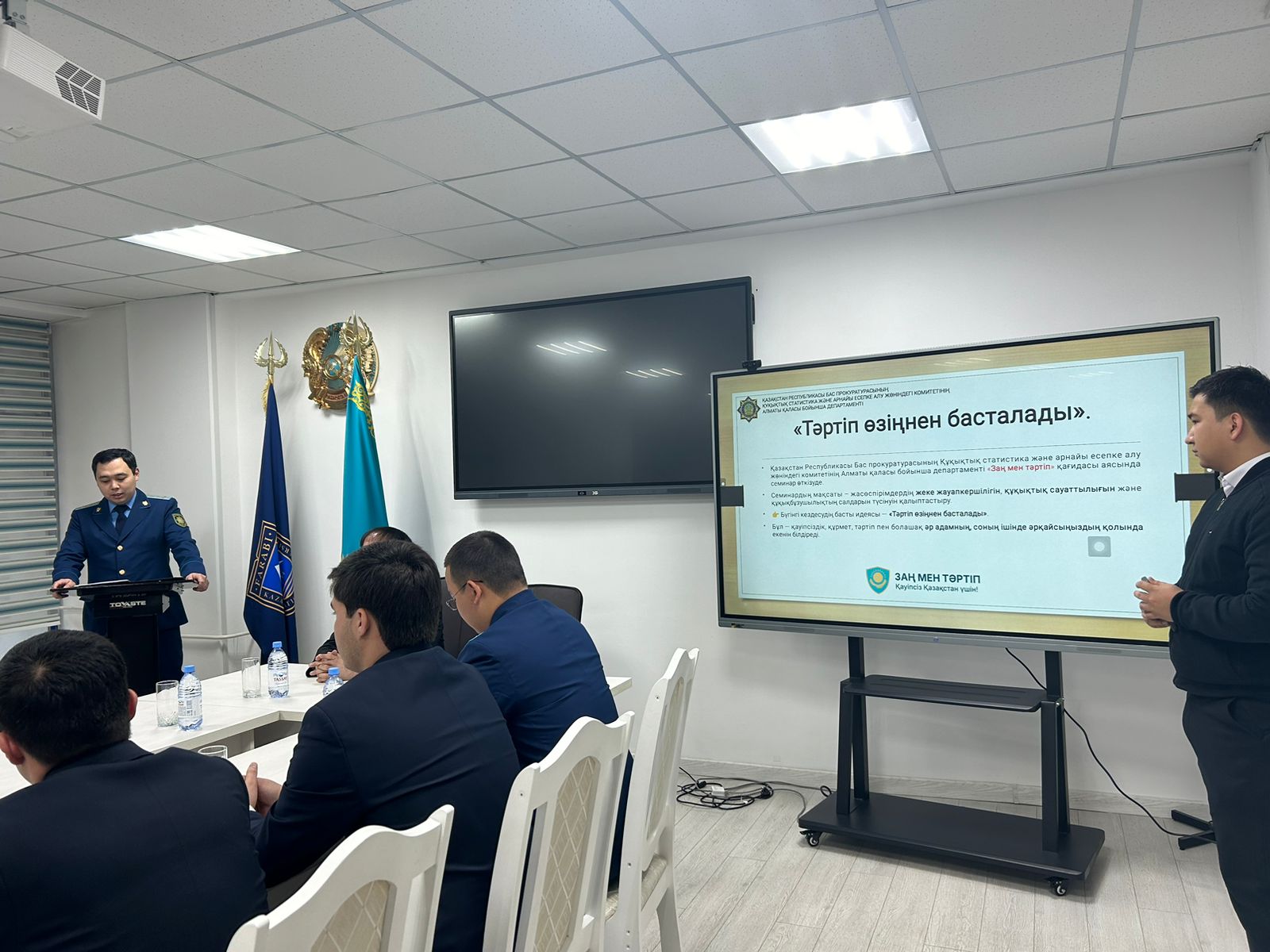 В мероприятии приняли участие старший прокурор Тулеубаев Г.Т., прокуроры Асқар Дин-Мухамед Жандосұлы, Бірлік Д.С., Муратхан Шокан — поэт, философ, член Союза писателей Казахстана, советник Генерального секретаря международной организации ТЮРКСОЙ, а также юрист Парасатской юридической палаты города Алматы Шонақын Ж.Ә.