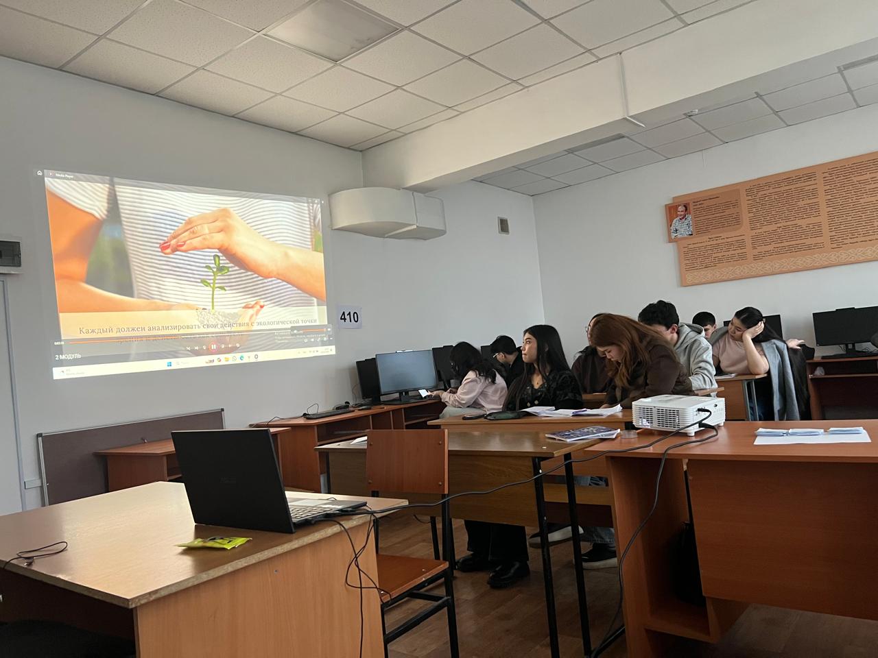 әл-Фараби атындағы Қазақ ұлттық университетінің География және табиғатты пайдалану факультеті, Тұрақты даму бойынша ЮНЕСКО кафедрасының аға оқытушы Керимкулова Айгерім Берікқызы мен Философия және саясаттану факультетінің әлеуметтік - тәрбие жұмысы жөніндегі декан орынбасары- Аязбаева Бейбіт Бөлтекқызының ұйымдастырумен: Бүгінгі таңда экологиялық мәдениет – қоғамның тұрақты дамуының негізгі шарты. Таза Қазақстан бастамасы аясында өткізілетін «Экосана» қоршаған ортаны қорғауға бағытталған әрекеттер туралы ақпарат беру арқылы «Экосана» – Қоқыс сұрыптау, энергия үнемдеу, «Таза Қазақстан – Тұрақты даму кепілі» бойынша тек ақпарат беру емес, экологиялық дағды қалыптастыру, қоршаған ортаны қорғау, табиғи ресурстарды тиімді пайдалану және болашақ ұрпаққа экологиялық қауіпсіз ел Таза орта – өмір сапасының жақсарту идеясын қалыптастыру мақсатында практикалық кеңестер мен тренинг жүргізілді.