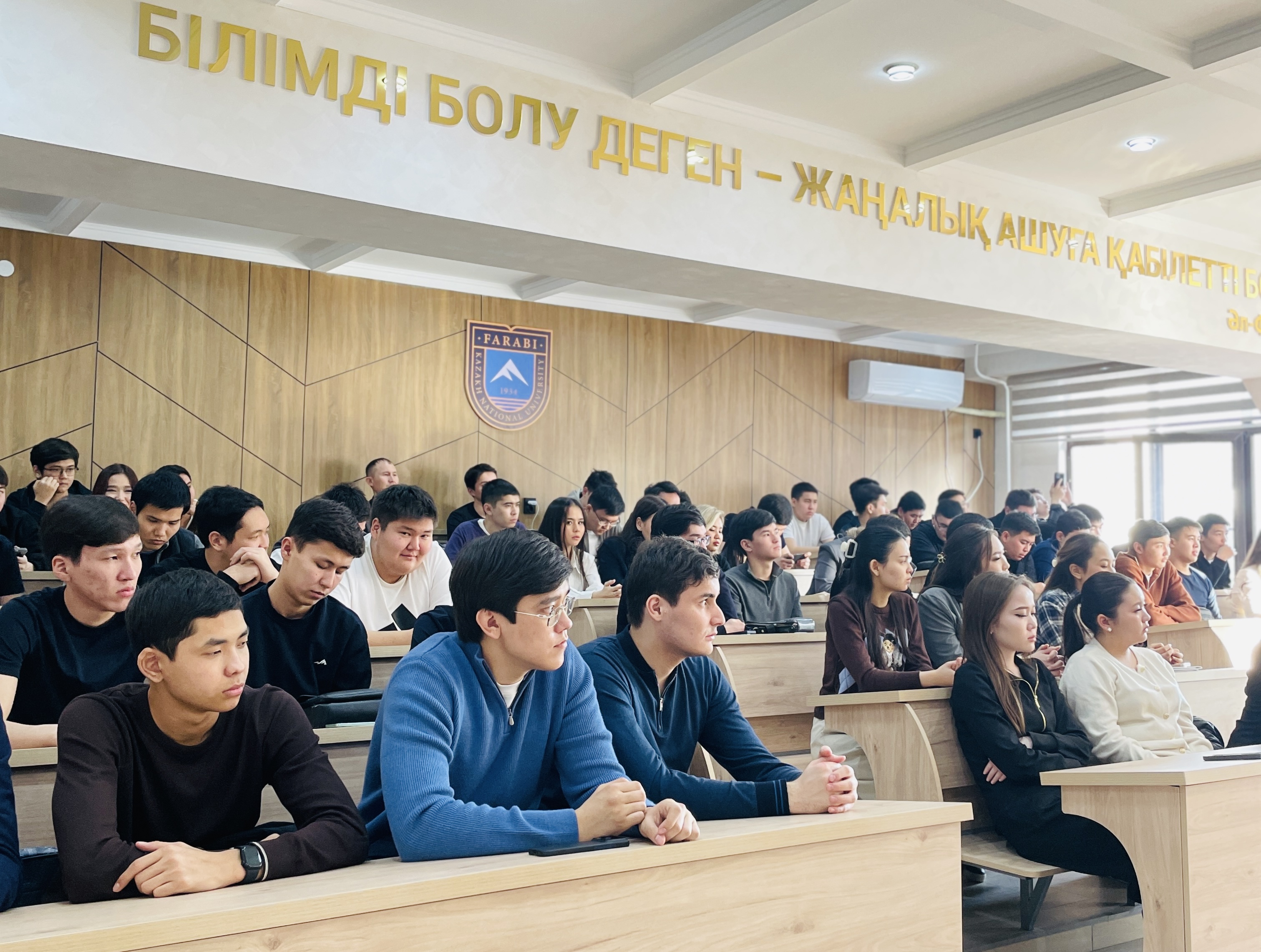 «Заң мен тәртіп» тұжырымдамасын жүзеге асыру аясында Заң факультетінде «Заңды білу – заман талабы: студенттердің құқықтық мәдениеті мен жауапкершілігі» тақырыбында студенттермен кездесу ұйымдастырылды. Басты спикер ретінде Алматы қаласының Алмалы аудандық прокуратурасының бөлім прокуроры – Орынбасар Абдықадыр шақырылды. Сондай-ақ кездесуге Заң факультеті деканының әлеуметтік-тәрбие жұмысы жөніндегі орынбасары Жақсылық Русланұлы Есламғалиев пен Мемлекет және құқық теориясы мен тарихы, конституциялық және әкімшілік құқық кафедрасының аға оқытушысы, з.ғ.м. Қанат Насырұлы Алихан қатысты.